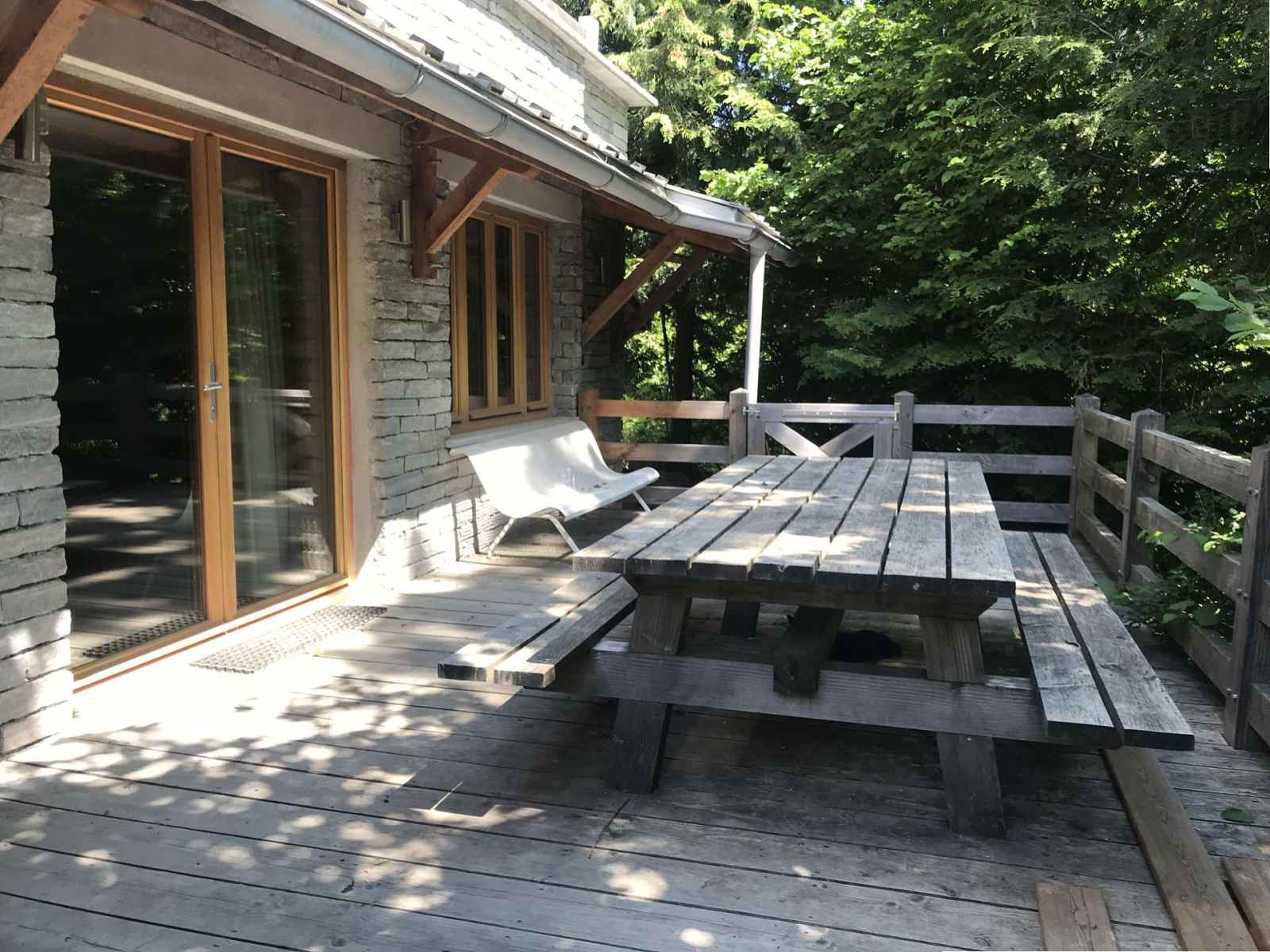 Appartement au rez-de-chaussée dans un chalet entièrement rénové avec grande terrasse. design contemporain conservant le charme montagnard.