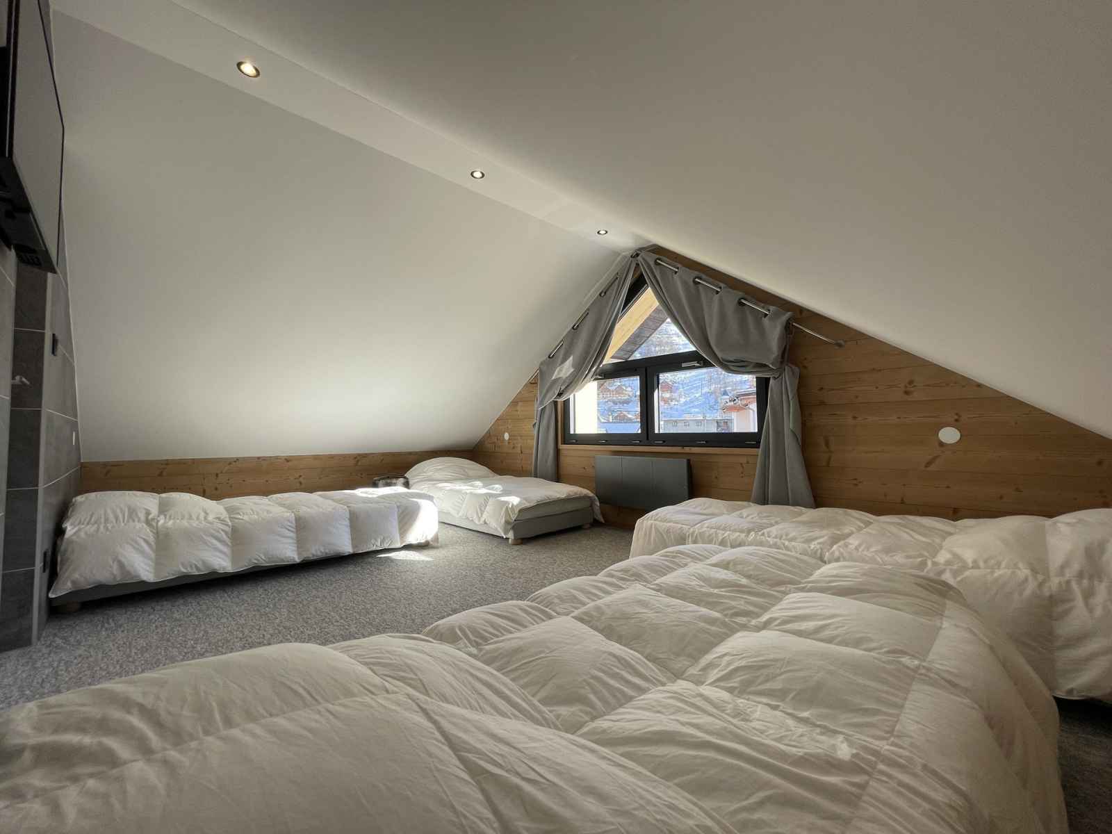 90cm) Literie avec couettes EQUIPEMENTS : Cuisine ouverte (Niv 0) : plaque à induction (3 foyers), four, réfrigérateur/congélateur, micro-ondes et lave-vaisselle. Séjour (Niv 0/ 30m²/ Sud-Est) : télévision et Wifi. Salle d'eau (Niv 0) : douche et lavabo. WC indépendant. Salle d'eau (Niv +1) : douche, lavabo et WC. SERVICES/OBSERVATIONS : Animaux refusés. Linge de lit et de toilette non fournis. Ménage de fin de séjour non inclus. Local à skis avec sèche-chaussures (commun à 5 appartements). Balcon filant (7m²/ Sud-Est) + Balcon filant (7m²/ Nord-Ouest/ accès chambre 2). 2 places de parking. ATTENTION : Caution par paiement dématérialisé avant votre arrivée. Sauna 5 places ouvert de 17h à 20 h commun à 5 appartements (Accès sous réserve des conditions sanitaires et non ouvert sur mai et juin).