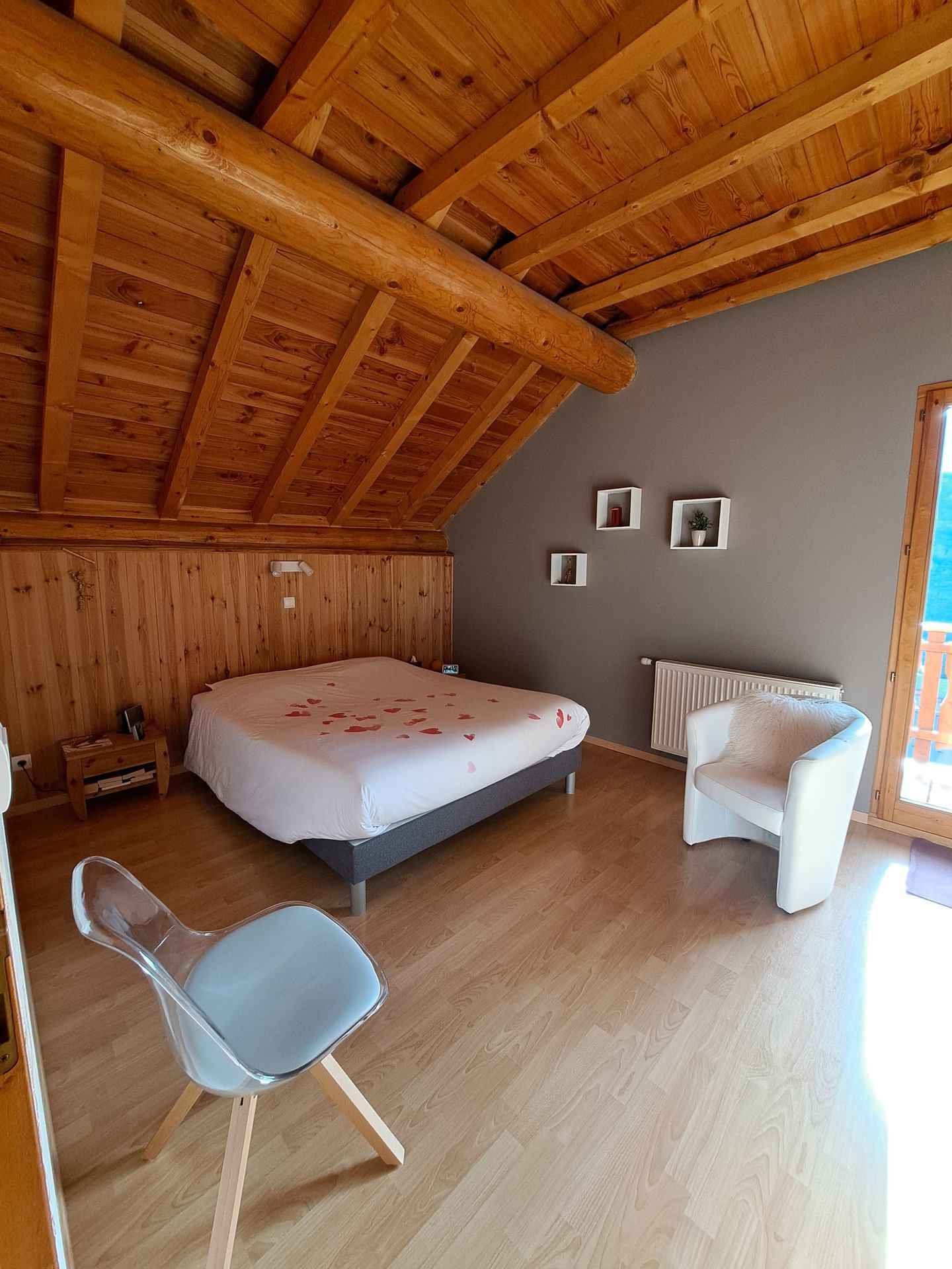 Sud) : 1 canapé convertible (160x200cm) Literie avec couettes EQUIPEMENTS : Espace de vie (Niv +1/ 52m²/ Sud) : - Coin cuisine : four, micro-ondes, plaque gaz (4 foyers), réfrigérateur (300L), congélateur (100L), cafetière, bouilloire, grille-pain, lave-vaisselle. - Coin salon : télévision, lecteur DVD et Wifi. Salle d'eau (Niv +1/ 5m²) : lavabo, douche et sèche-cheveux. Salle de bains (Niv +3/ 11m²) : lavabo, baignoire, sèche-cheveux, lave-linge et sèche-linge. 2 WC indépendants (Niv +1 et Niv +3). Entrée (Niv 0) : penderie et banc. SERVICES/OBSERVATIONS : Animaux acceptés (à condition qu’ils ne restent pas seuls). Lits fait à l’arrivée. Linge de toilette non fourni (possibilité de location auprès de la remise de clé). Ménage de fin de séjour non inclus. Kit bébé à disposition : lit avec matelas, chaise haute. Rangement pour les skis dans le garage. Appartement non-fumeur (espace fumeur sur balcon). Terrasse (45m²/ Sud) avec salon de jardin et barbecue (en été uniquement) + 3 balcons (séjour/ chambre 2/ chambre 3) + Jardin non clos (50m²/ accessible en été uniquement). Garage (2 voitures) + 2 places de parking en extérieur. Chalet accessible par un escalier extérieur. Hébergement classé 4* pour 8 personnes. Hébergement labellisé Gites de France 3 épis pour 8 personnes. ATTENTION : Caution par paiement dématérialisé avant votre arrivée.