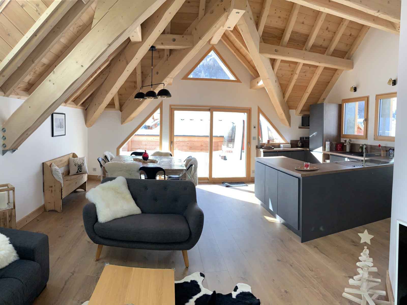 ÉtÉ : chalet individuel dans valloire centre, à proximité des commerces et activités, à 500m de la base de loisirs (piscine, patinoire, espace bien-être). grande terrasse