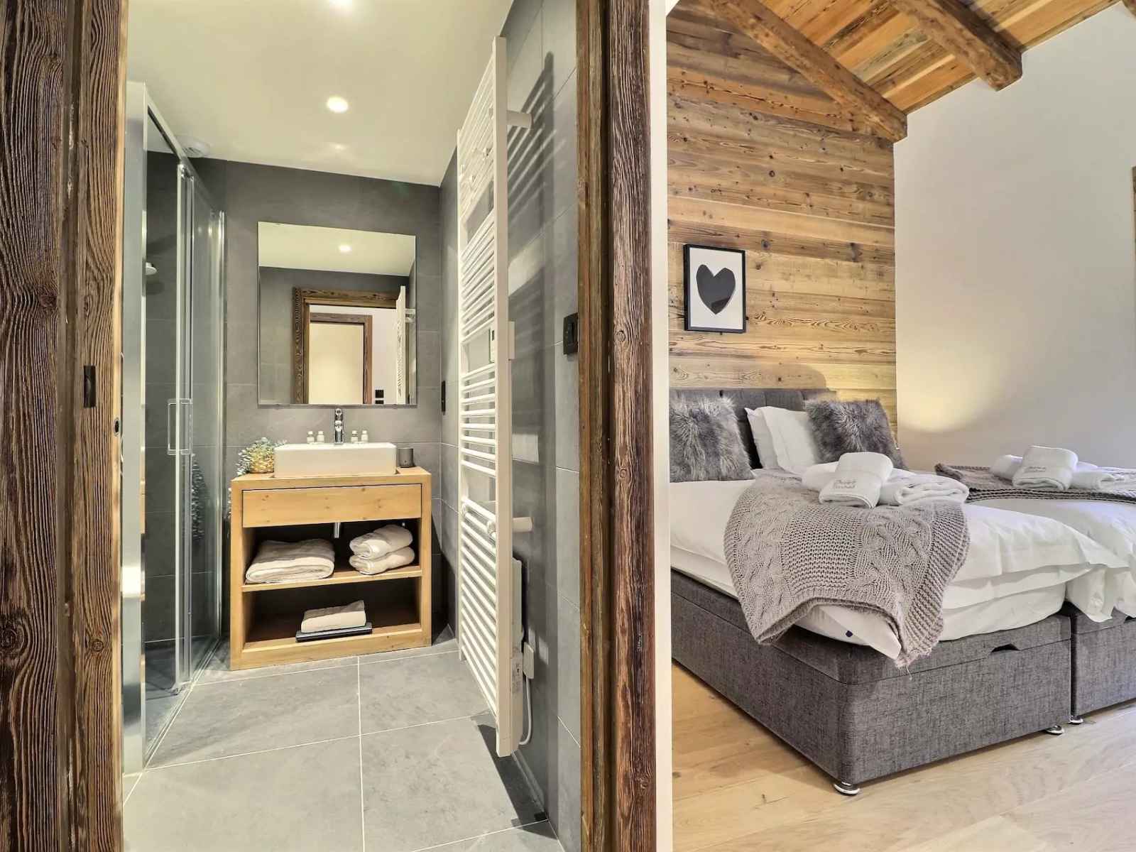 - Accès direct à la terrasse et au jacuzzi extérieur, pour profiter de moments de bien-être face aux montagnes