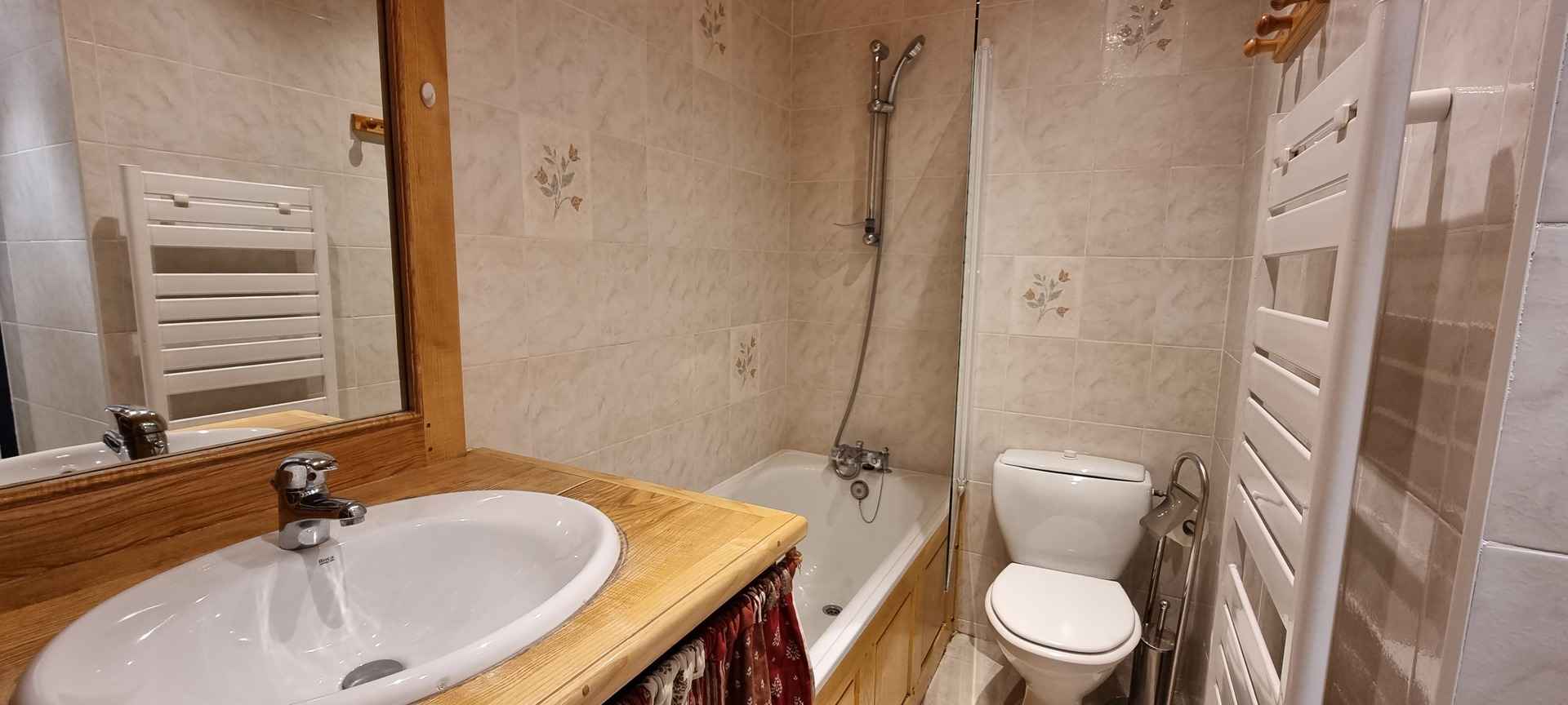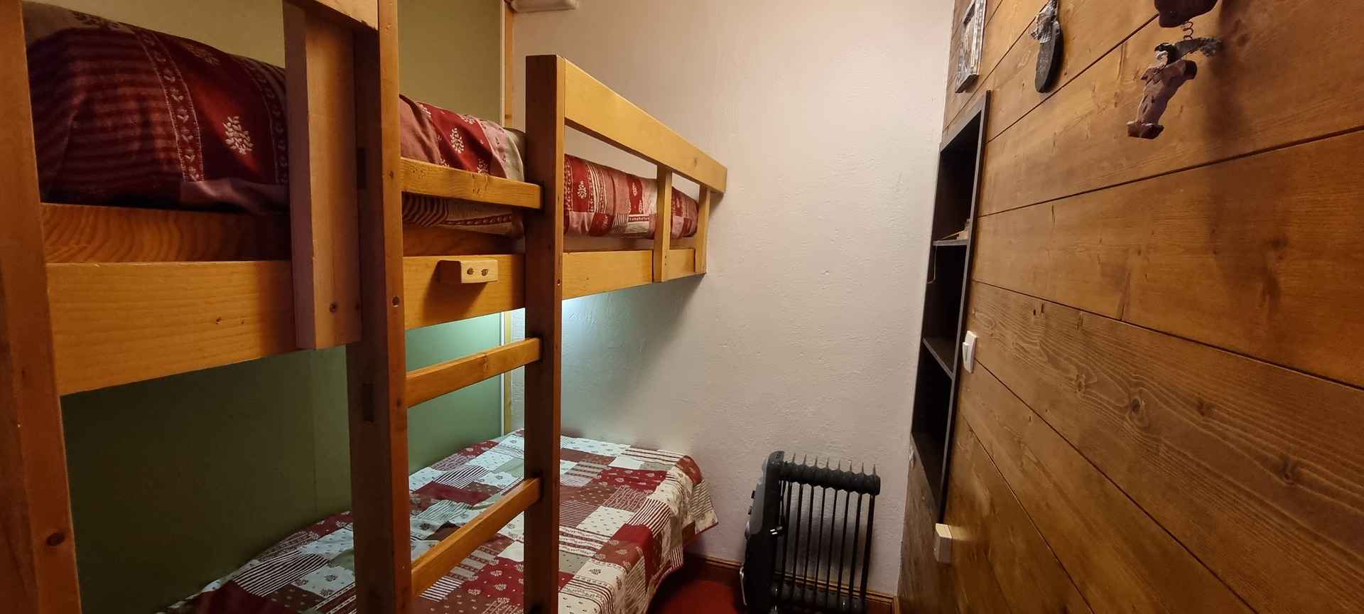 séjour comprend 1 canapé-lit clic-clac pour 2 personnes (160 * 200) et une télévision écran plat. Pour votre confort, un coin montagne avec 2 lits superposés est à votre disposition. La cuisine, située dans l'entrée, est équipée d'un four micro-ondes, de 2 plaques électriques, d'un réfrigérateur top et d'un lave vaisselle. La salle de bains dispose d'une baignoire avec pare-douche, d'un sèche-serviettes et d'un WC. Services : Animaux non tolérés. Commerces dans la résidence. Résidence skis aux pieds et casier à skis. Equipé de couettes Linge de lit et de toilette en coton et ménage de fin de séjour en supplément. Boitier WIFI en supplément. Matériel bébé sur demande, réservation conseillée.