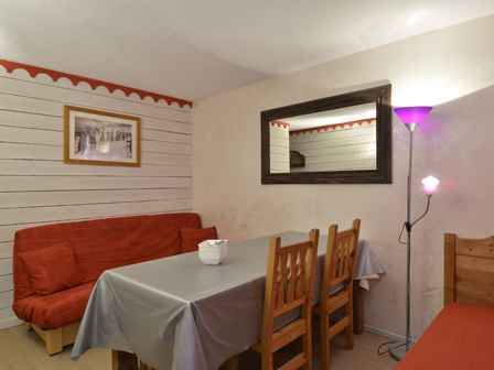 skiable d'Aime 2000. Le séjour comprend 1 canapé lit clic clac pour 2 personnes, une table pour 4 personnes et une télévision écran plat. Pour votre confort, une cabine avec 2 lits superposés est à votre disposition. La cuisine, située dans l'entrée, est équipée d'un four mixte, de 2 plaques vitrocéramiques, d'un réfrigérateur top et d'un lave vaisselle. La salle de bains dispose d'une baignoire et les WC ne sont pas séparés. Services : Animaux tolérés. (supplément de 30€) Commerces dans la résidence. Résidence skis aux pieds et casier à skis. Equipé de couettes Linge de lit et de toilette en coton et ménage de fin de séjour en supplément. Matériel bébé sur demande, réservation conseillée.