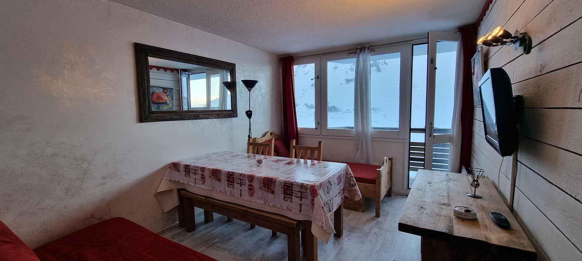 Appartement totalement conforme à la description sur le site. Bien orienté sud côté pistes. Bon état général malgré des équipements un peu anciens. Accès quasi immédiat à la galerie commerciale située un niveau au-dessus par l'escalier ou ascenseur.