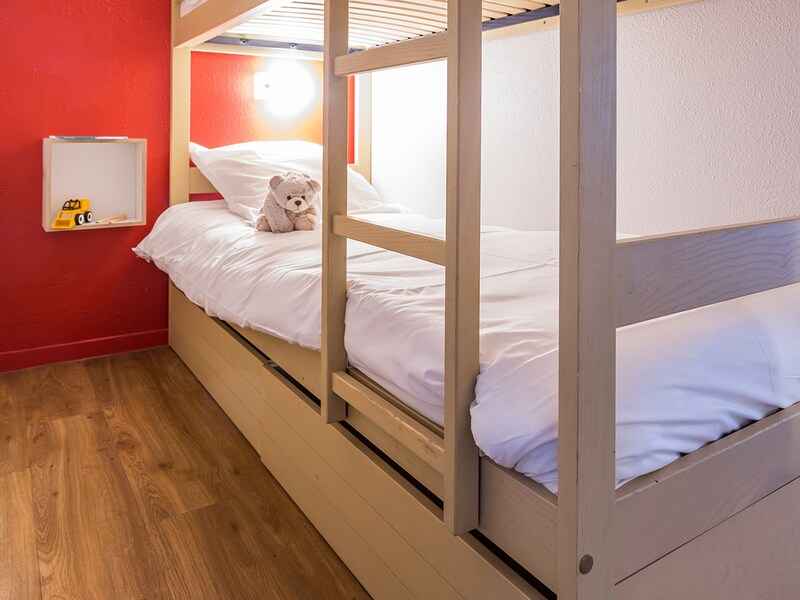 - pièce à vivre : 2 lits-banquettes et 1 coin nuit avec 2 lits superposés (recommandés pour les enfants)