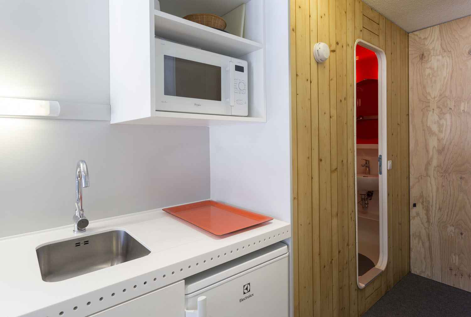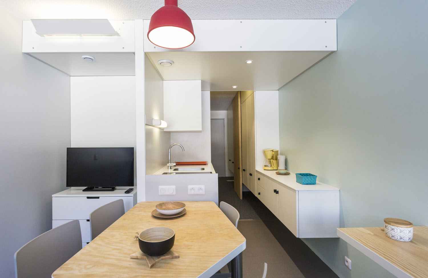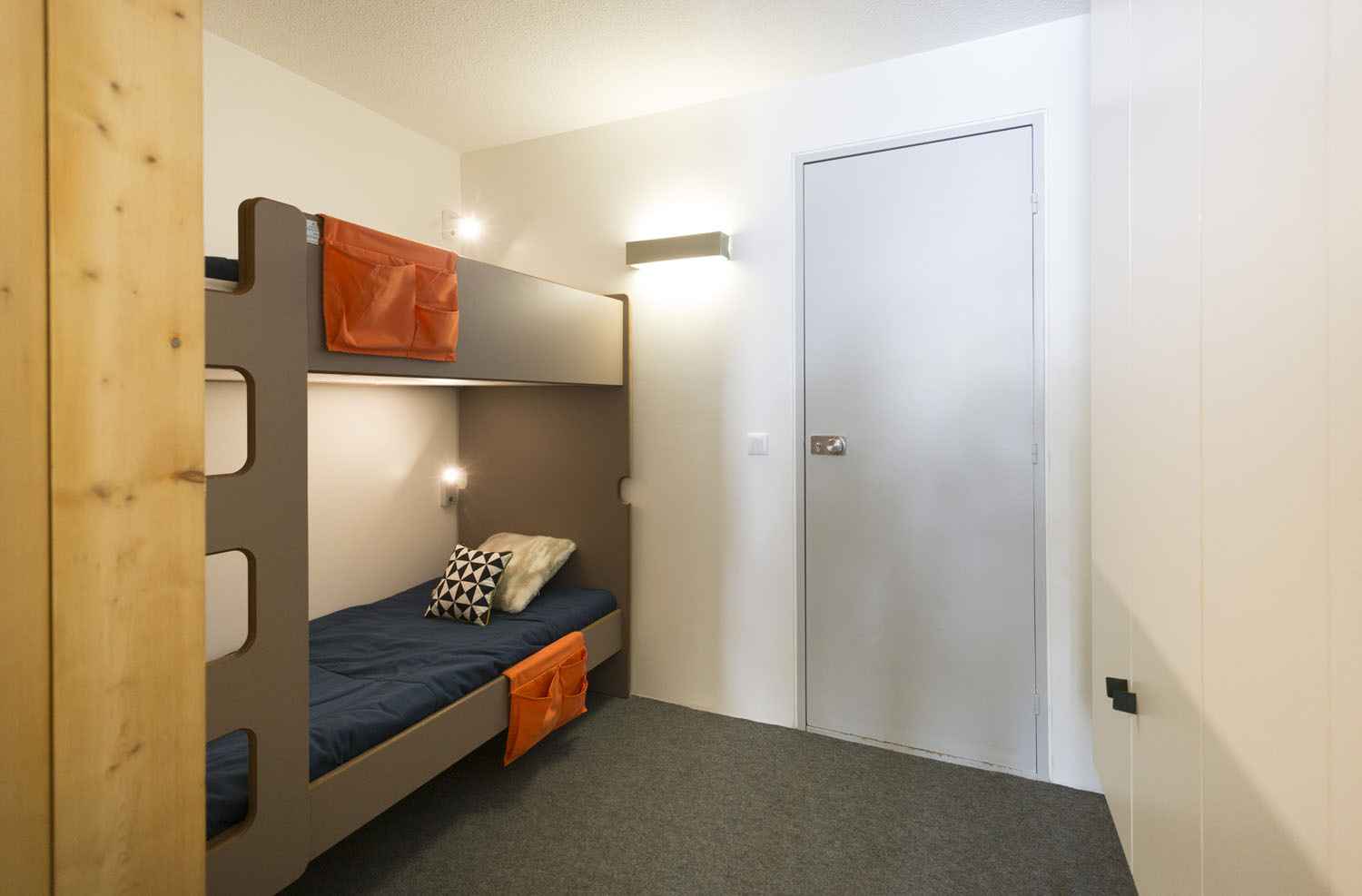 studio coin montagne comportant une entrée équipée de 2 lits superposés en 80cm (le couchage en hauteur ne convient pas aux enfants de -6 ans).