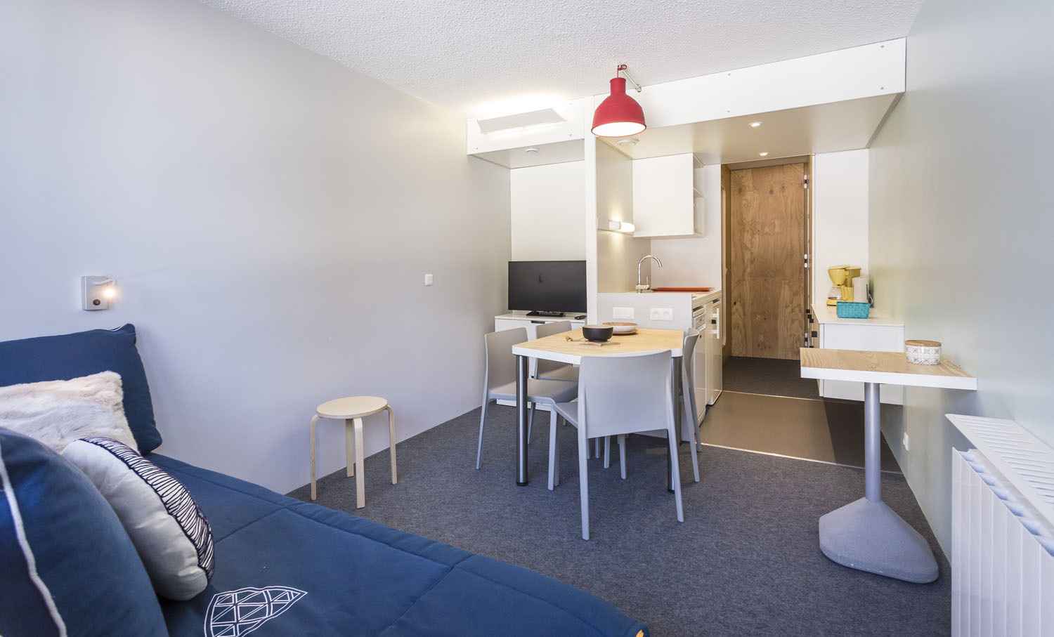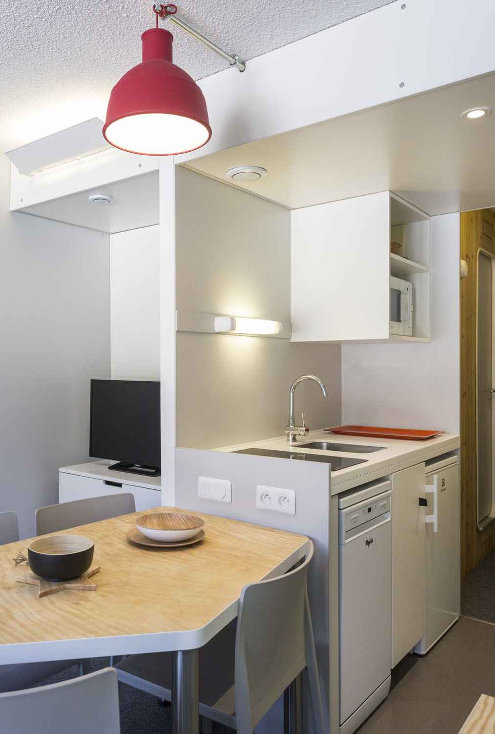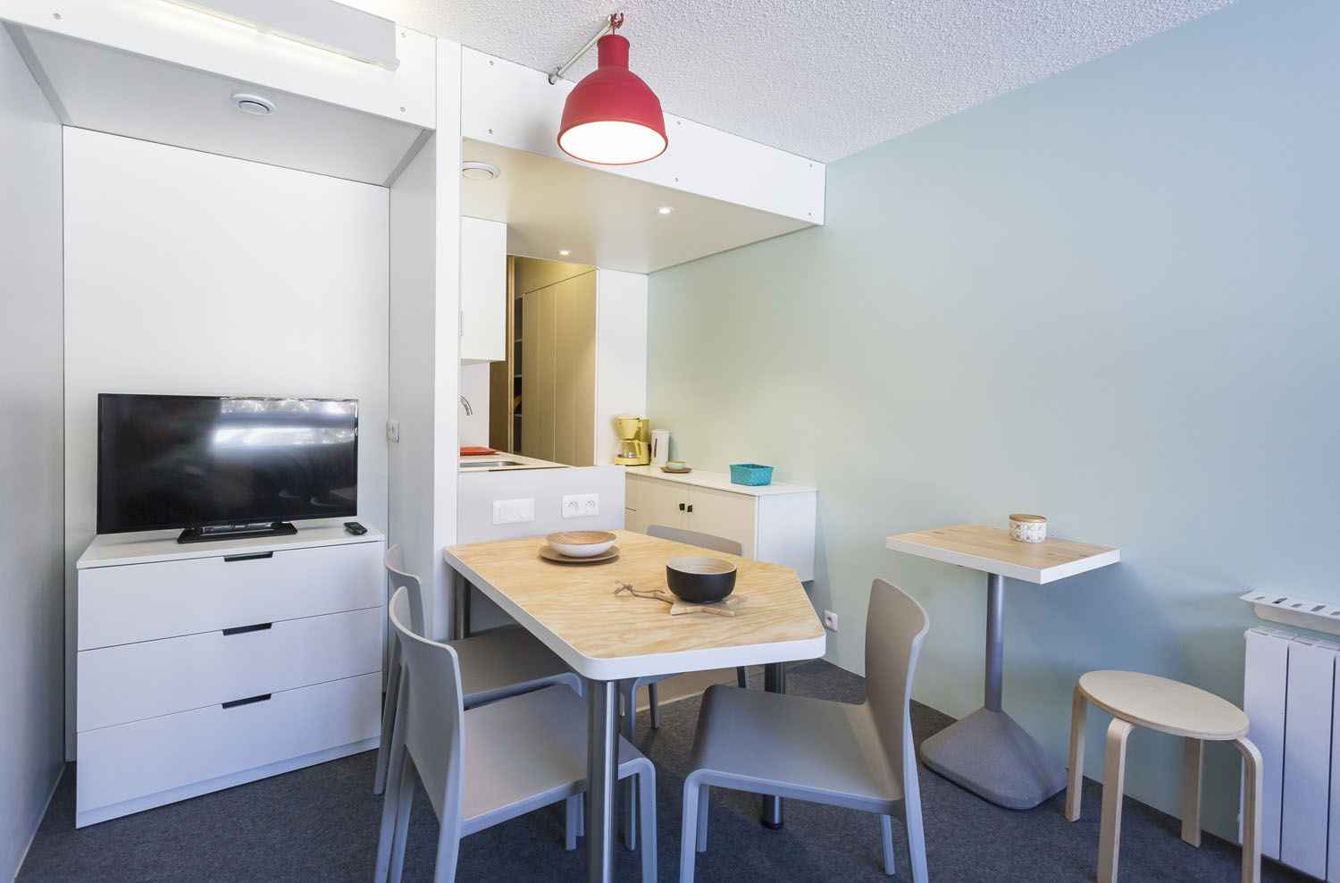 studio coin montagne comportant une entrée équipée de 2 lits superposés en 80cm (le couchage en hauteur ne convient pas aux enfants de -6 ans).