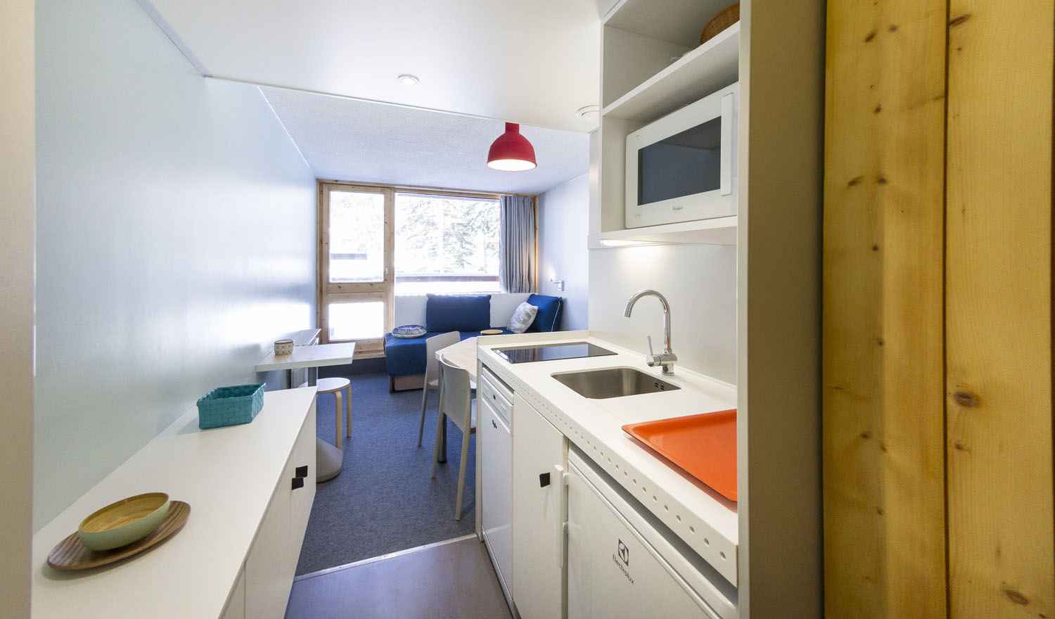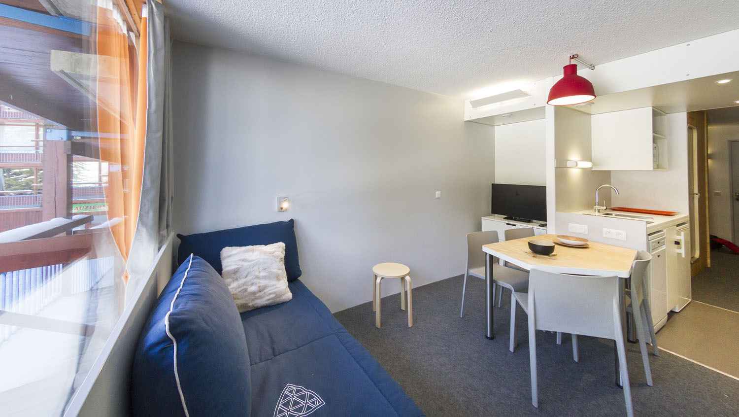 Studio coin montagne rénové de 25m² pour 4 personnes, orienté nord/est, au 7ème étage de la résidence belles challes du charvet, au pied des pistes et des commerces. avec balcon.