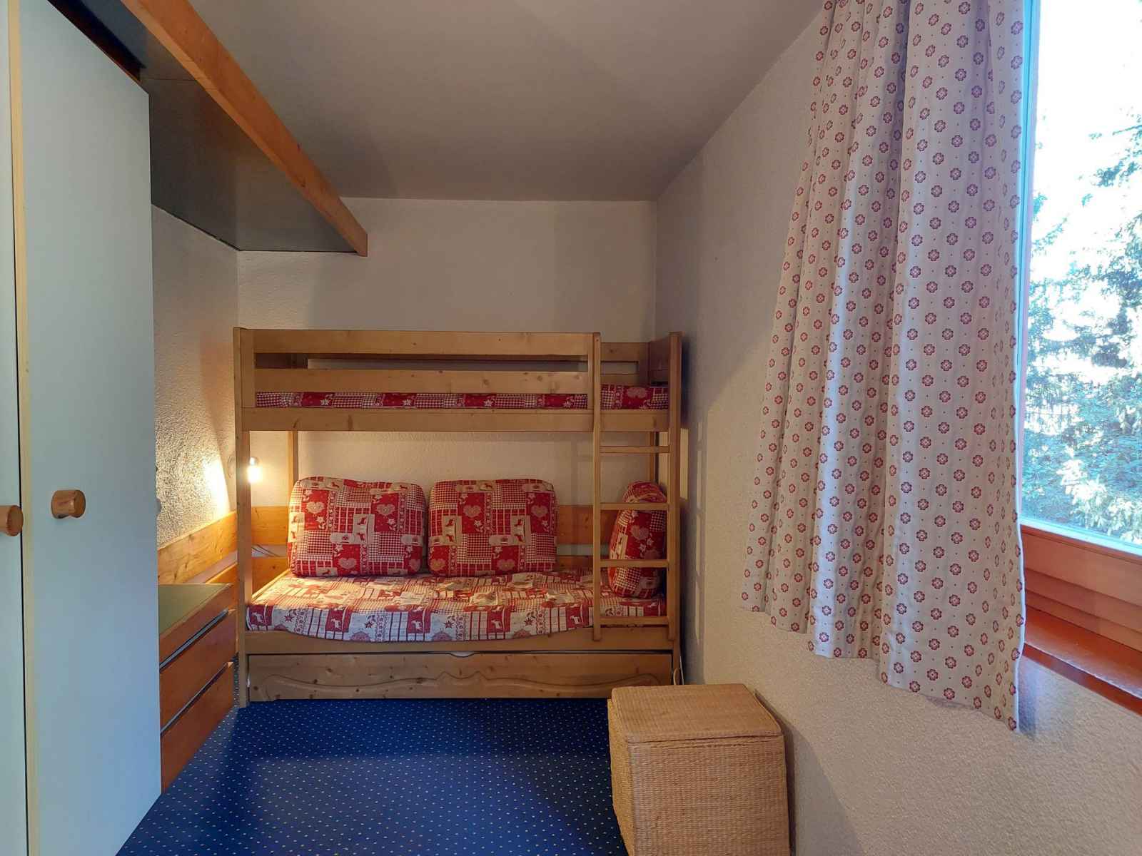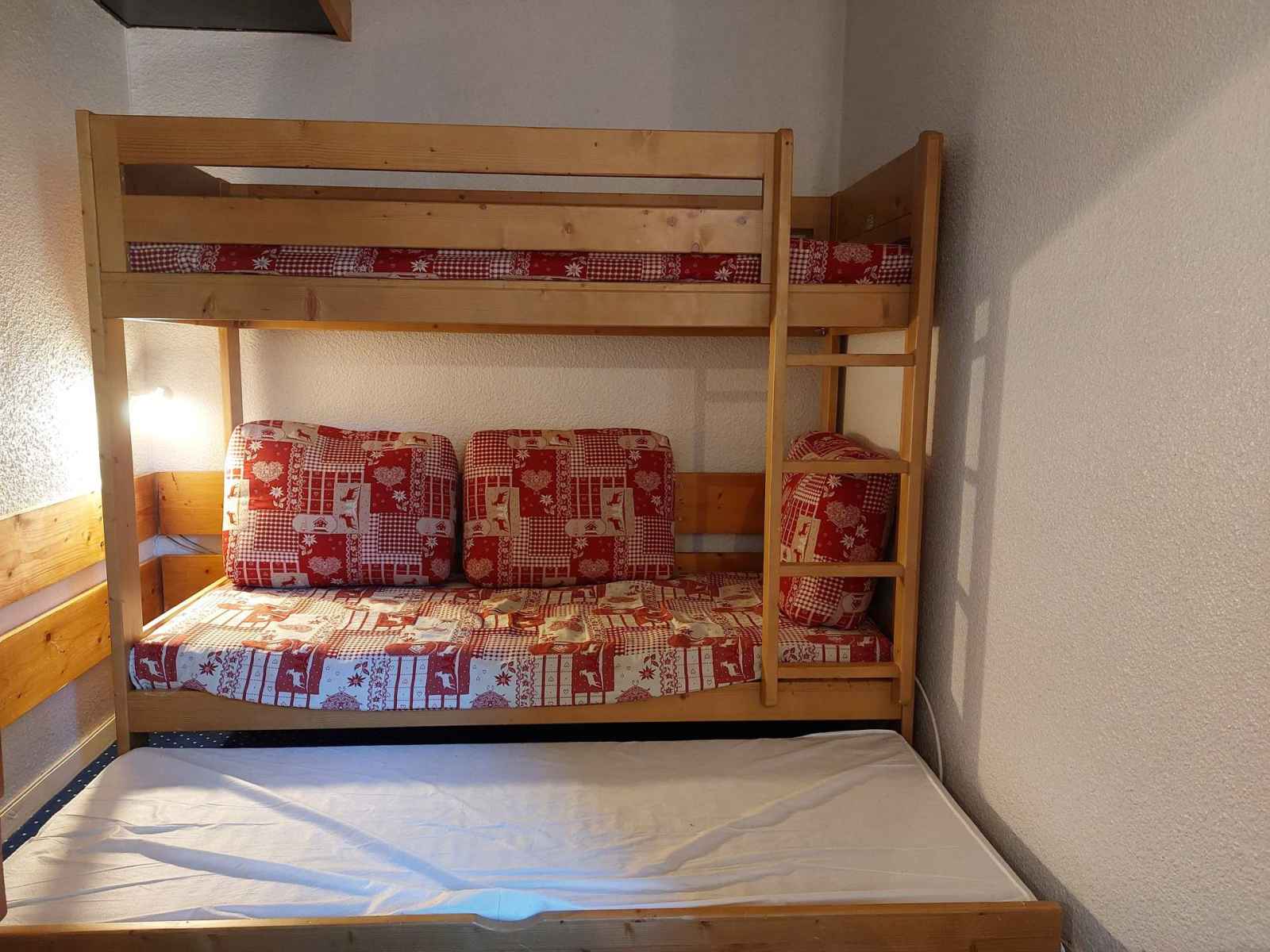 superposés et un lit gigogne. Merci de noter que le couchage en hauteur ne convient pas à des enfants de moins de 6 ans. Les sanitaires A votre disposition une salle de bains avec baignoire et WC. La cuisine ouverte sur le séjour Elle est entièrement équipée avec des plaques vitrocéramique, un réfrigérateur, un grille-pain, une bouilloire, une cafetière et un micro-onde. Les équipements complémentaires Une télévision dans le séjour. L’accès Wifi Informations supplémentaires Nos amis les animaux ne sont pas tolérés dans ce studio. Possibilité de louer une place dans le parking de la résidence. Appartement équipé de couettes. Linge de lit et de toilette en supplément.