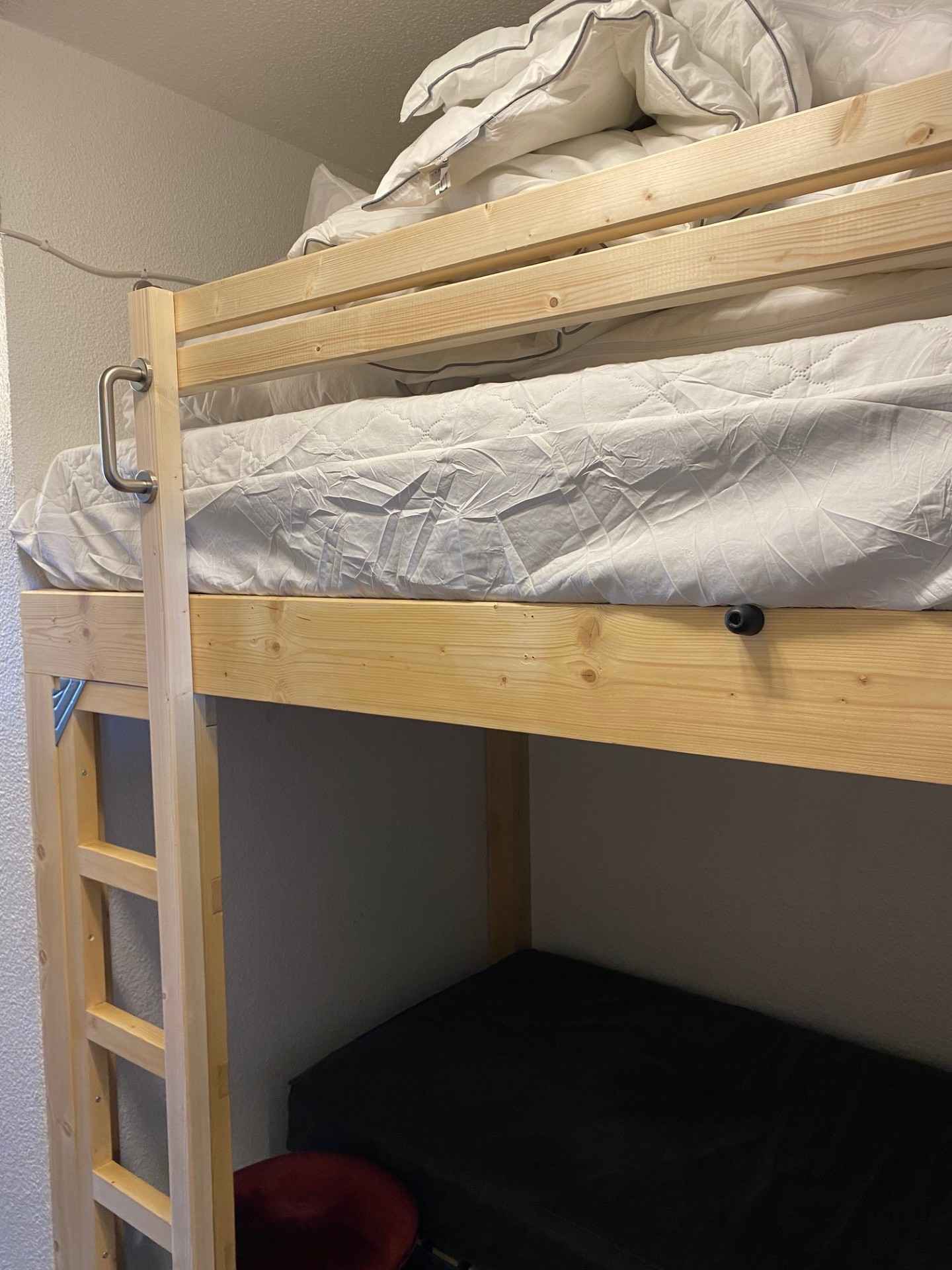 coin cabine avec un lit double (en 140cm), et un lit simple en (90cm) Séjour avec télévision à écran plat. Cuisine comprenant : plaques à inductions, un lave vaisselle, four, réfrigérateur, bouilloire électrique, cafetière Nespresso Krups, et grille-pain Salle de douche et WC. Linge de lit, de bain et ménage fin de séjour en supplément. A proximité de toutes les commodités Appartement non fumeur. Animaux refusés