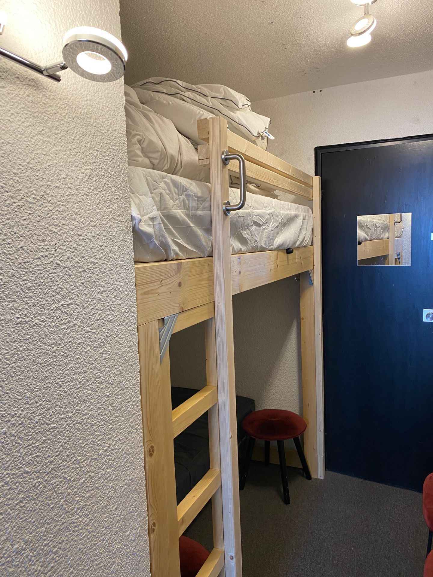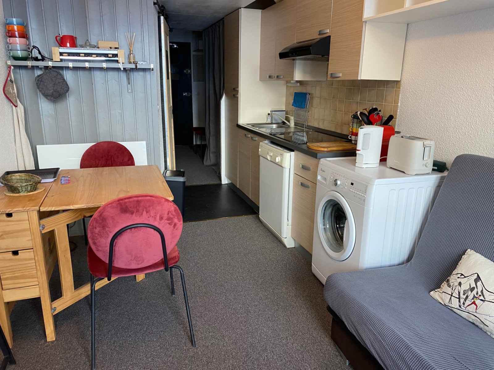 Studio meublé et rénové pour 4 personnes, d'une superficie de 21m², situé au centre de la station d'arc 2000, dans la résidence aiguille du grand fond au 3ème étage, balcon exposé ouest. le studio a été intégralement rénové à l'automne 2025