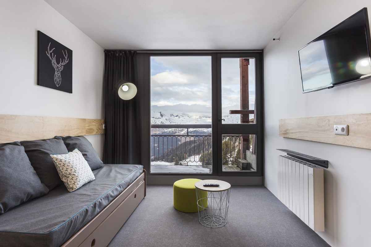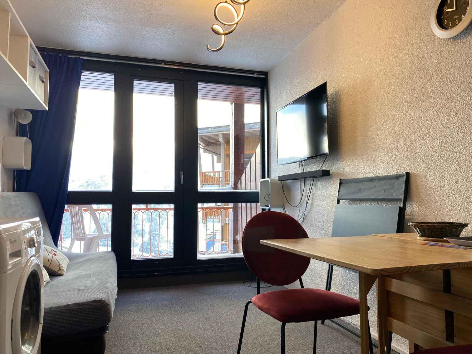 Studio cabine meublé et équipé pour 4 personnes, entièrement rénové, d'une superficie de 28m², situé au 4è étage de la résidence aiguille rouge, avec un balcon exposé sud .