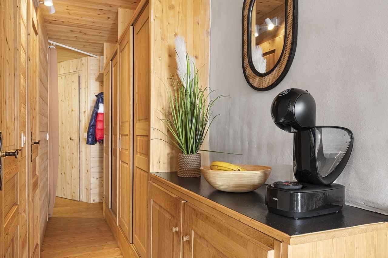vitrocéramique, four traditionnel, micro-ondes, lave vaisselle, réfrigérateur, cafetière Nespresso, bouilloire, et toaster Salle de douche avec WC. Linge de lit et de bain fournis (sauf court séjour et en été) Ménage fin de séjour en supplément. Casier à ski situé dans le sas d'entrée Non fumeur Animaux refusés