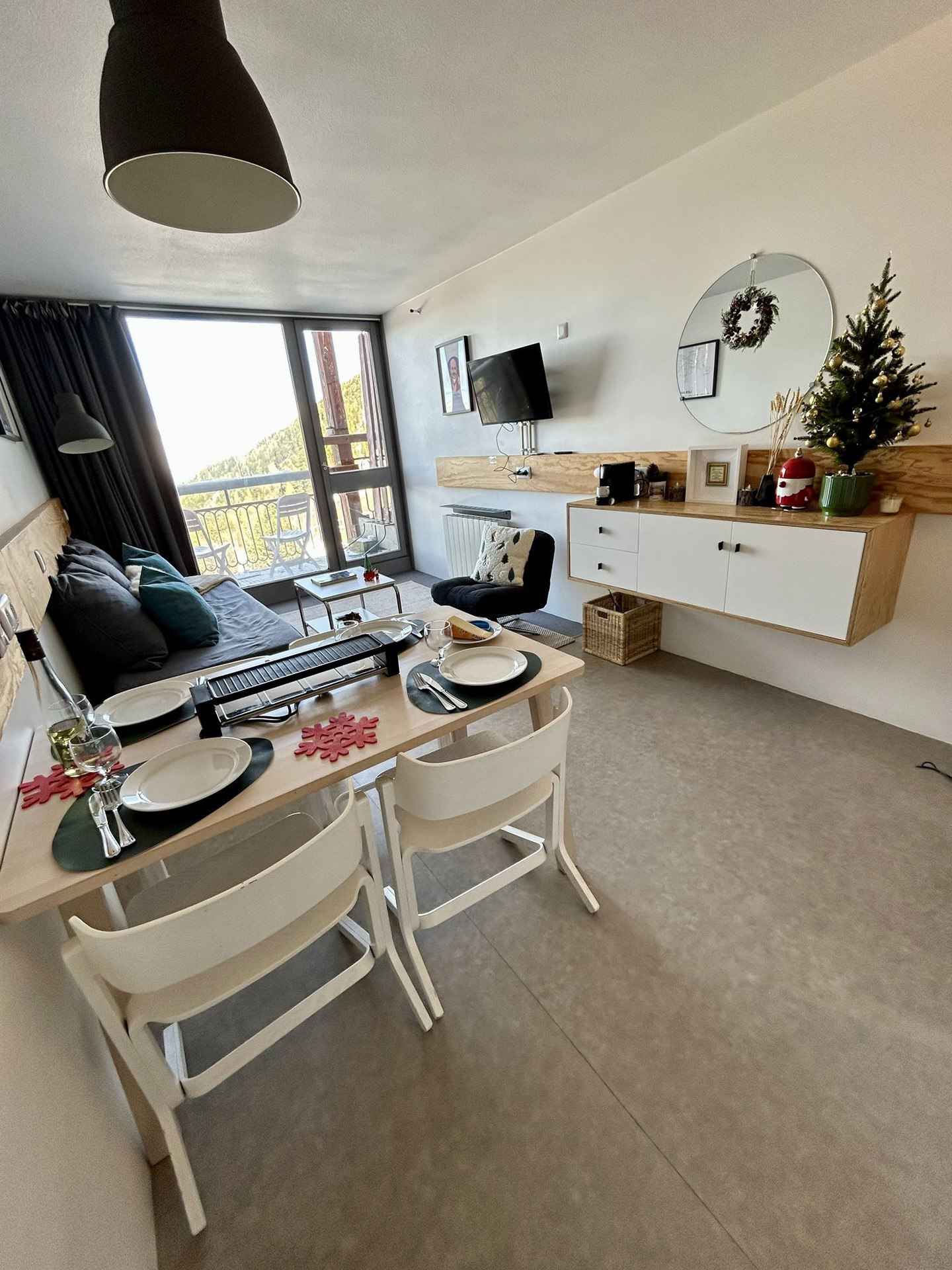 micro-ondes et réfrigérateur, bouilloire, grille-pain, cafetière électrique à filtre Salle de bain avec WC Linge et ménage fin de séjour en supplément. Casier à ski situé dans le sas d'entrée Non fumeur Animaux refusés