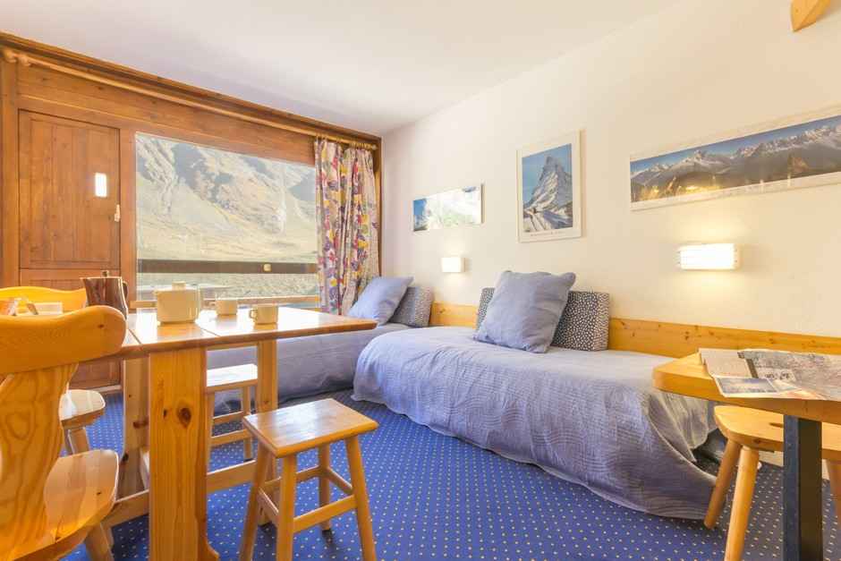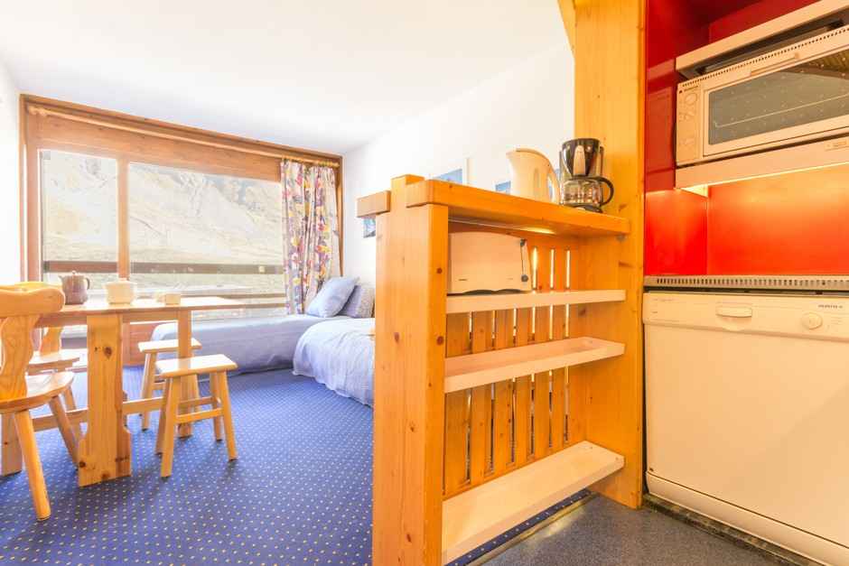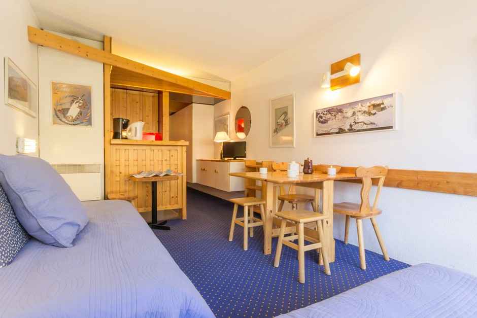 Studio cabine meublé et équipé pour 4 personnes, d'une superficie de 24m², situé au 4è étage de la résidence aiguille rouge, avec un balcon exposé sud .