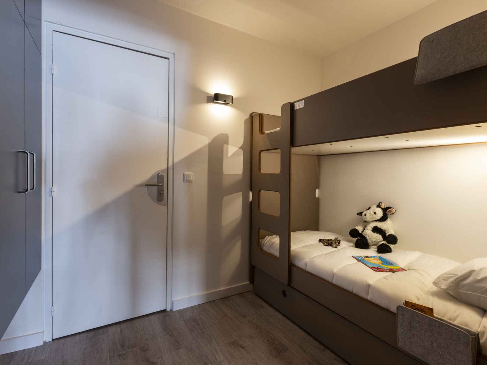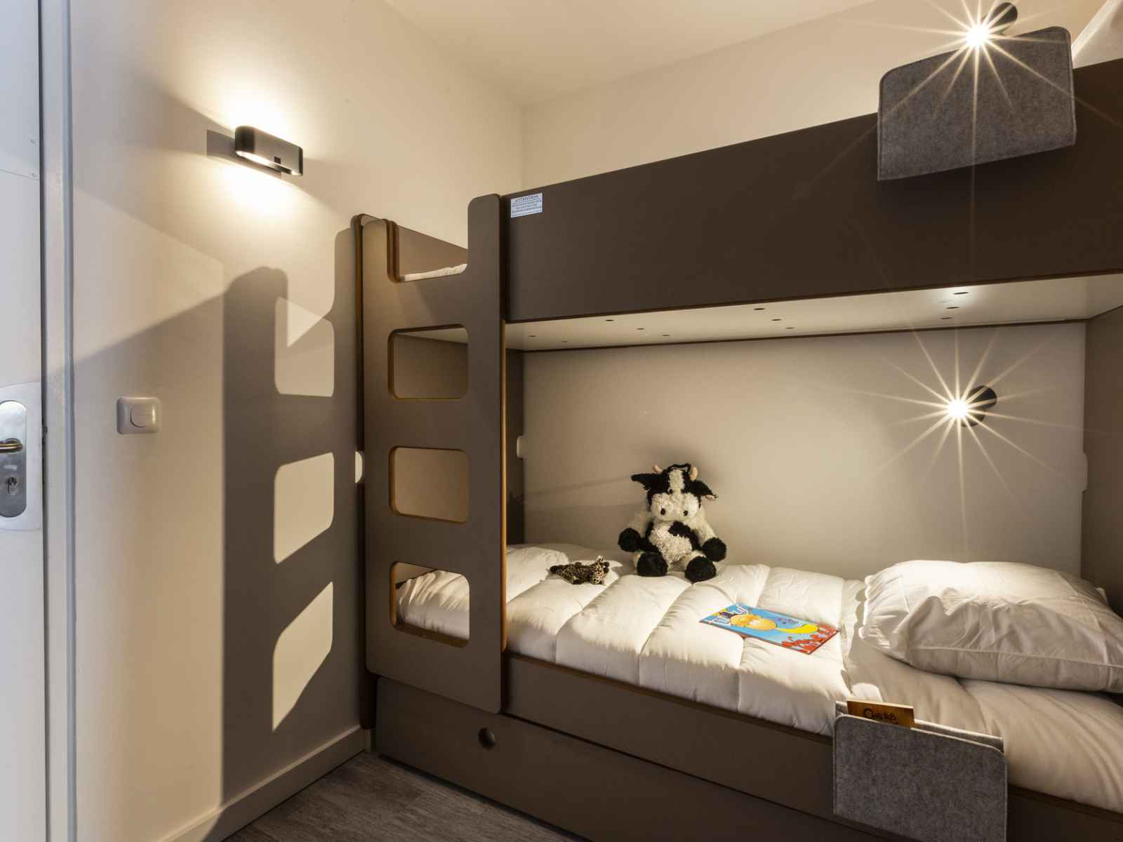 entrée comportant une alcove avec 2 lits superposés et 1 lit gigogne en 80cm (le couchage en hauteur ne convient pas aux enfants de moins de 6 ans)