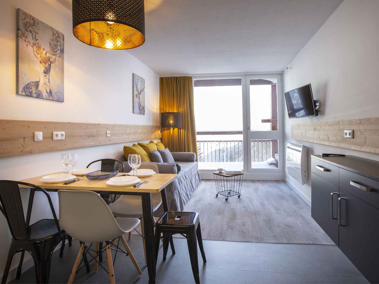 Studio rénové et chaleureux, 29m² équipé pour 5 personnes, situé au 9ème étage de la résidence varet 2, balcon exposé nord/nord-ouest avec vue côté mont blanc