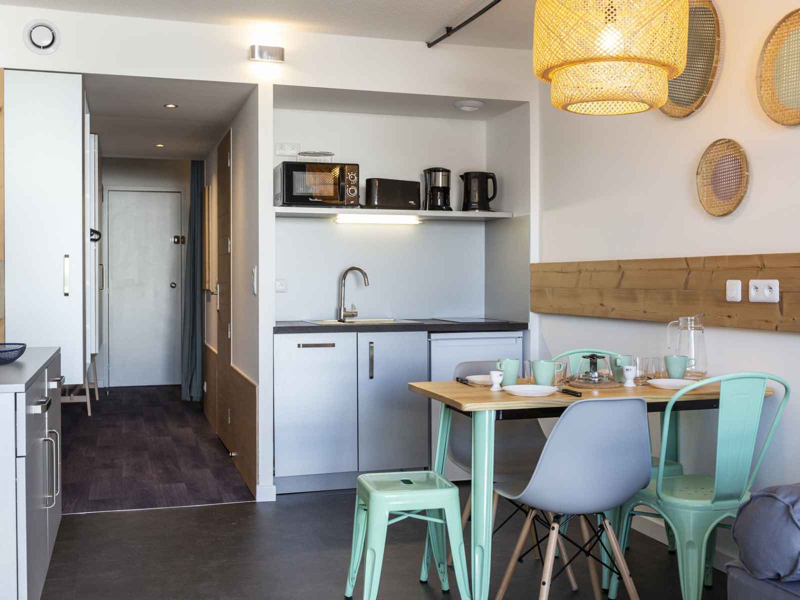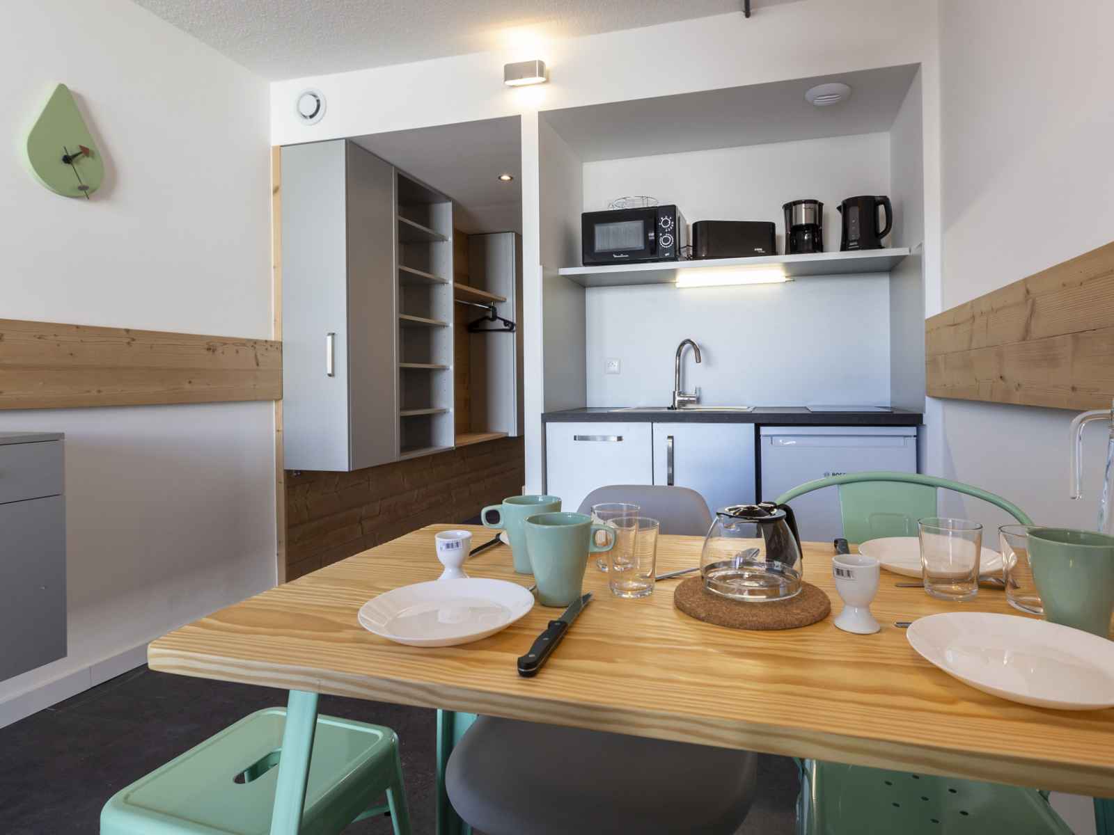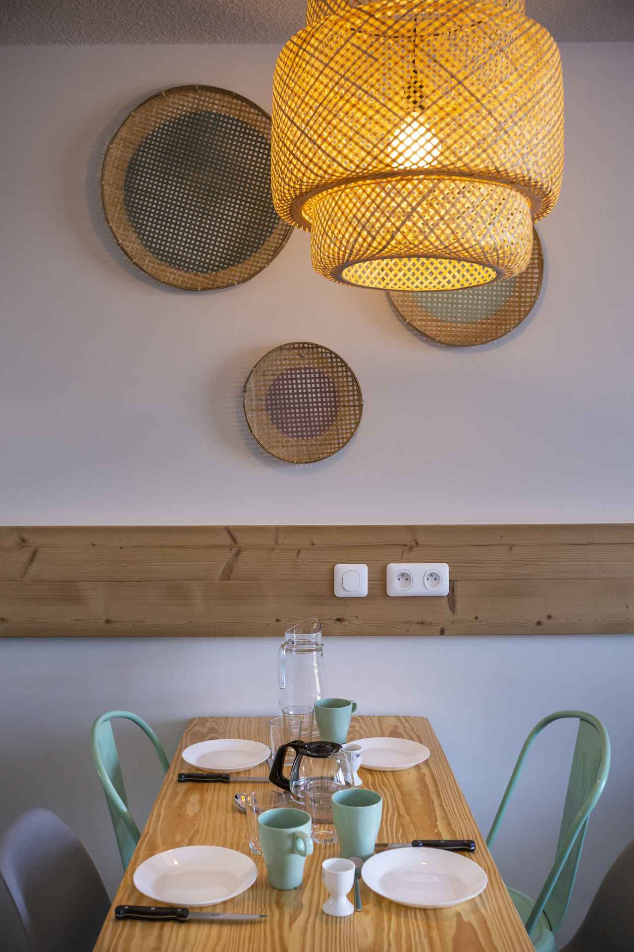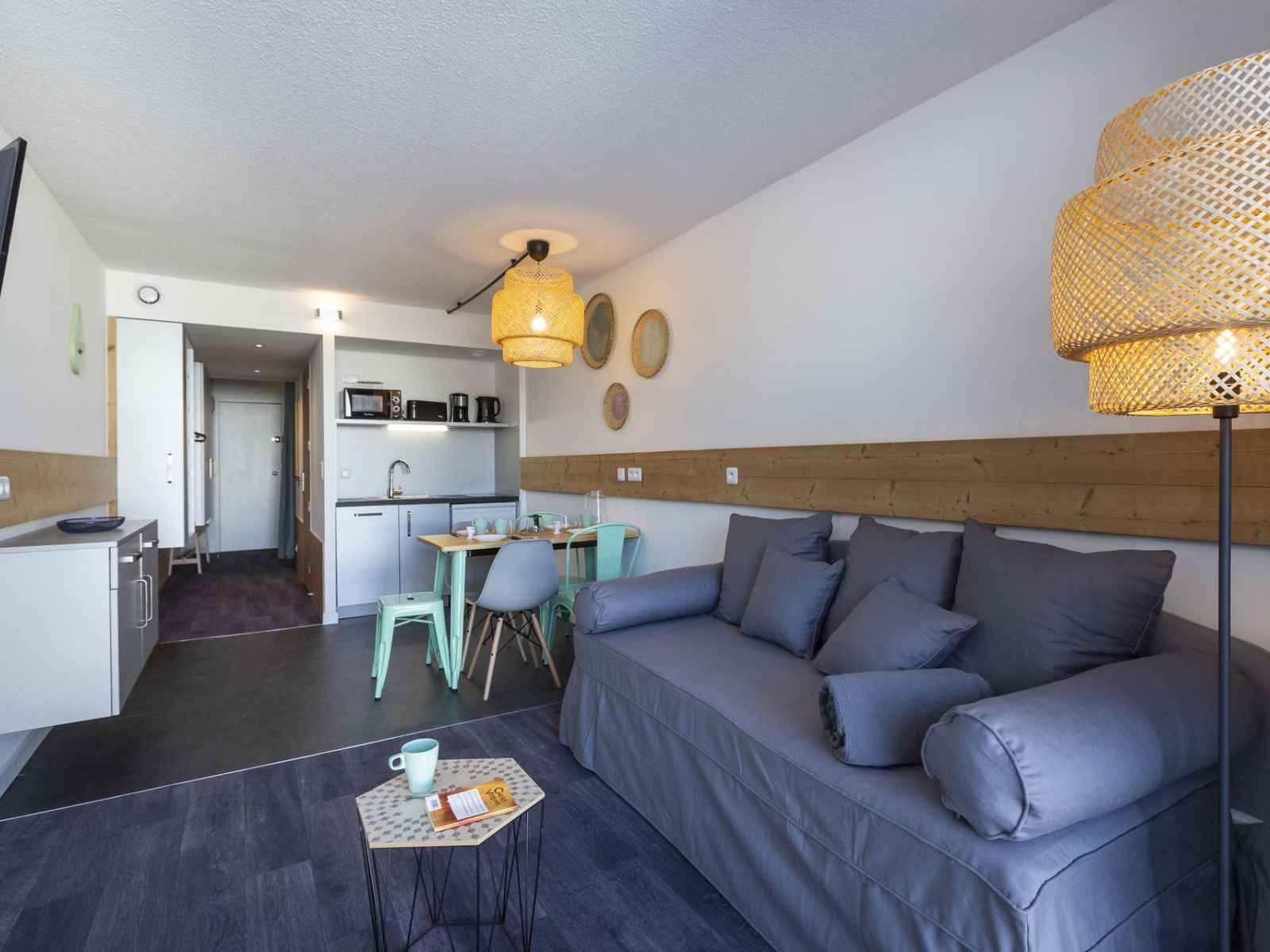 convertible avec lit gigogne permettant un couchage double en 160cm TV avec port USB Sol en flotex et lino pour la cuisine Cuisine comprenant : four combiné (grill + micro-ondes), 2 plaques à induction, réfrigérateur/freezer, lave-vaisselle, toaster, bouilloire, et cafetière électrique à filtre Salle de bain avec WC Placard à skis dans l'appartement Draps éco-responsables et ménage fin de séjour en supplément Non fumeur Animaux refusés WIFI gratuit.