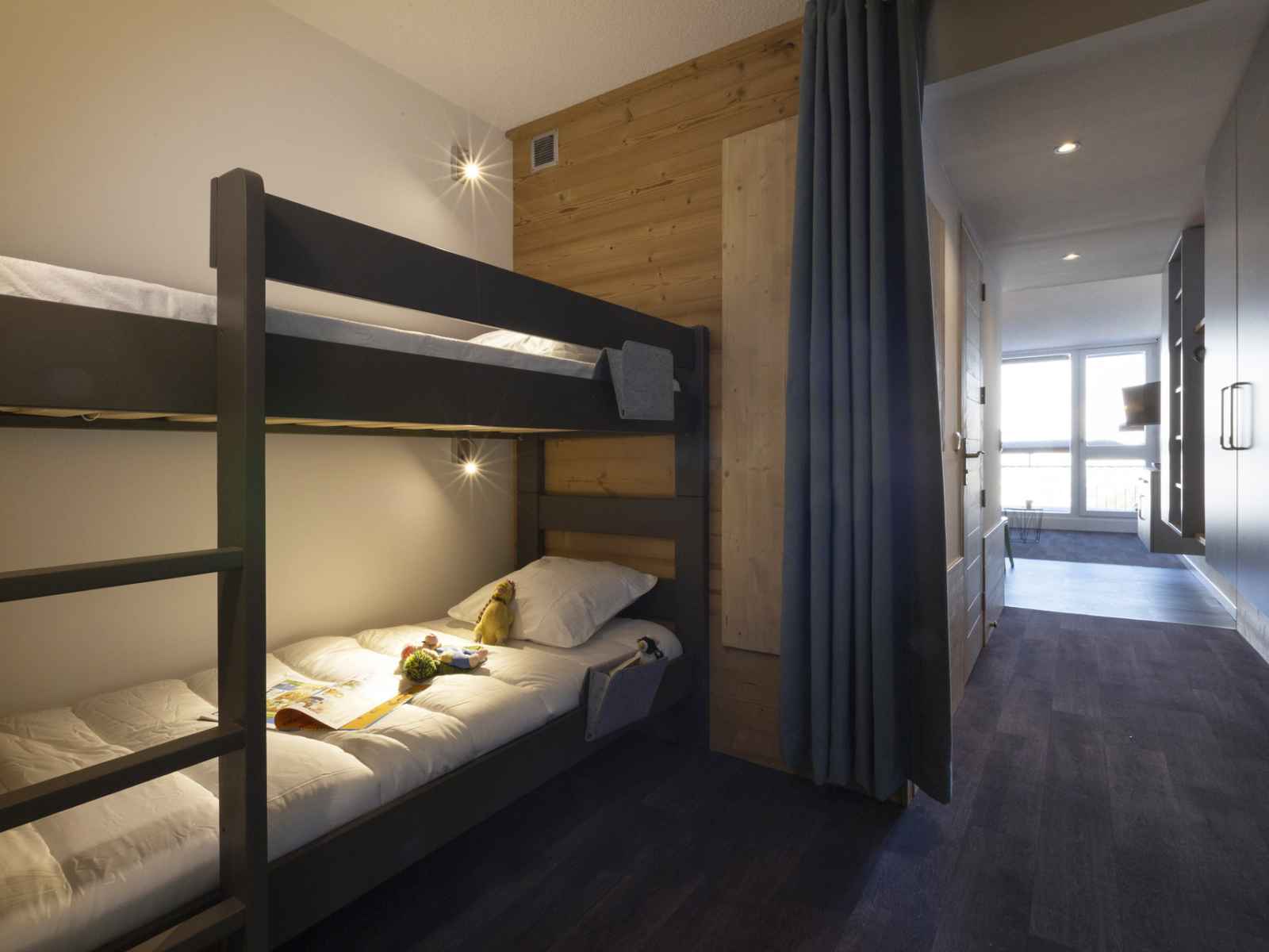 entrée comportant un coin cabine avec 2 lits superposés en 80c cm (le couchage en hauteur ne convient pas aux enfants de - 6ans)