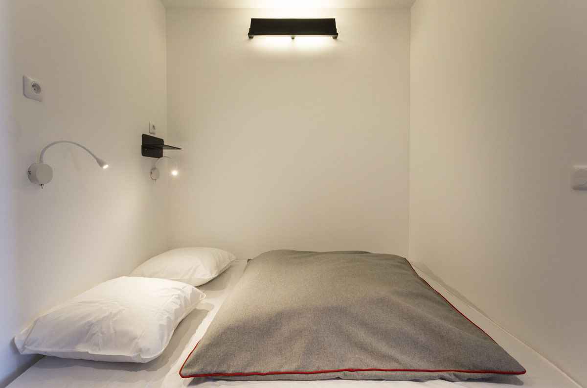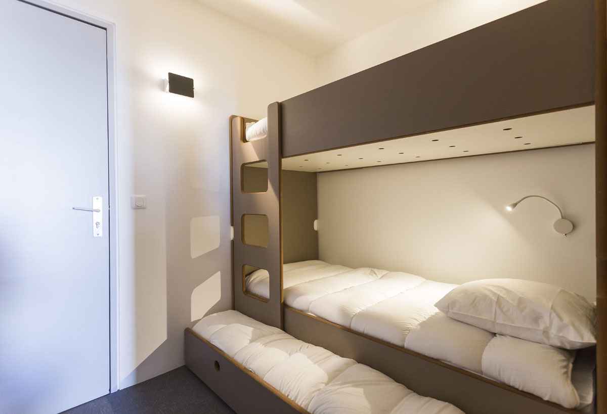 entrée avec 2 lits superposés et 1 lit gigogne en 80cm (le couchage en hauteur ne convient pas aux enfants de moins de 6 ans)