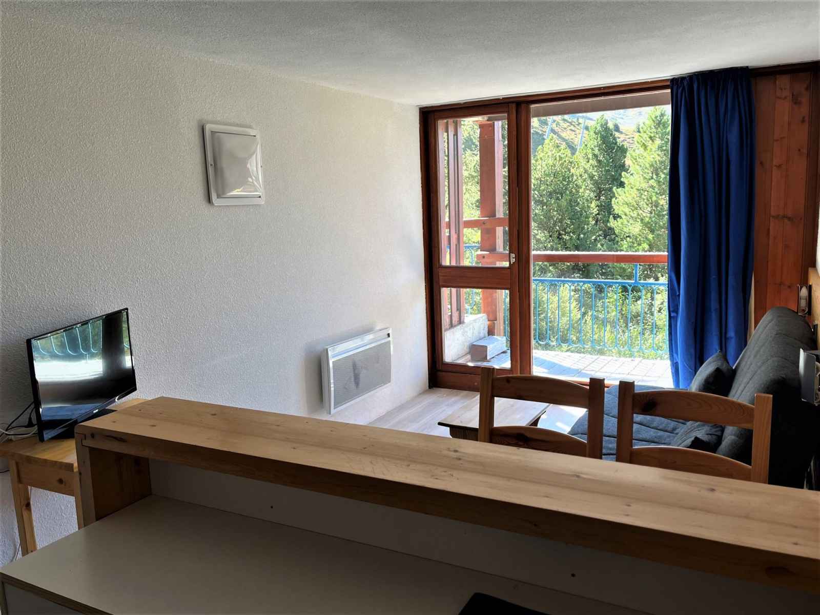 pour votre séjour au ski à arc 2000, réservez ce studio fonctionnel de 28m² pouvant accueillir jusqu'à 5 personnes. son balcon exposé sud vous apporte de la luminosité et une jolie vue sur les pistes et les montagnes. situé au 7ème étage d'une résidence avec ascenseur, vous serez au calme tout en étant à environ 5