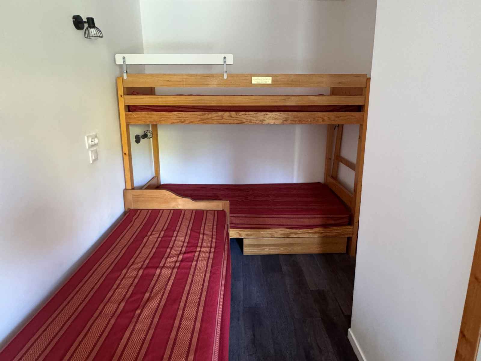 séjour divisible: 3 lits 1 personne et 2 lits superposés, 1 téléviseur écran plat