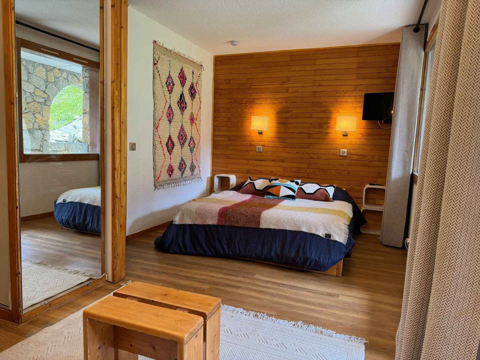 il est situé au sud ouest et au 5ème étage avec un balcon et vue sur les pistes.