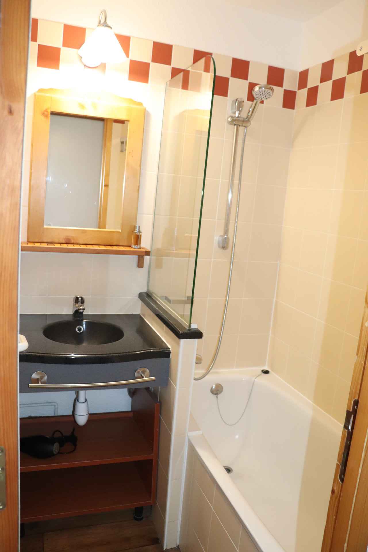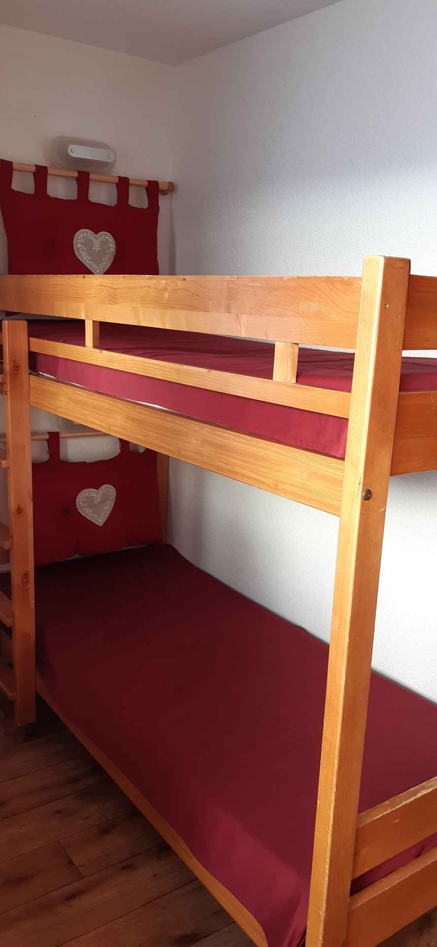 plat Coin nuit : 2 couchages superposés (fenêtre) Salle de bain : baignoire et WC Draps et serviettes non fournis Equipé de couettes WIFI station payant