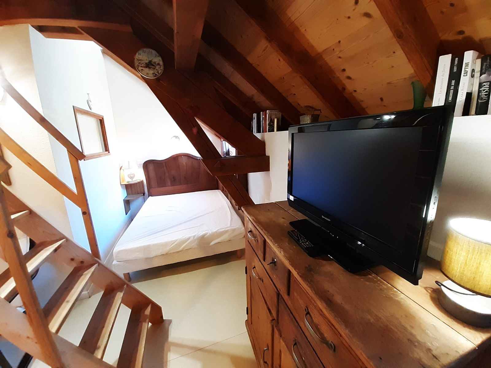 cuisson. Couchages : Séjour : 1 lit double de 140cm (accès limité). Mezzanine accessible par un escalier très raide : 1 lit double de 120cm (hauteur limitée). Salle d’eau avec douche et toilettes. Lave-linge. Connexion Wifi 4G en supplément. CONDITIONS DE LOCATION : Linge de lit inclus du 15/12 au 15/04 pour les courts séjours d'hiver. Le linge de lit n'est pas inclus pour les séjours de cures toute l'année. Linge de toilette et ménage de fin de séjour non inclus et sur demande. Caution demandée à l'arrivée. Supplément de 30€ par animal par séjour (maximum 2 animaux). INTERDICTION DE FUMER DANS LE LOGEMENT