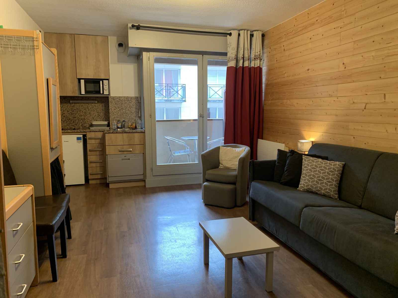 micro-ondes, lave-vaisselle et réfrigérateur. COUCHAGES: - Coin montagne: un ensemble de lits superposés (2 personnes) à l'entrée. Le couchage en hauteur ne convient pas à un enfant de moins de 6 ans. - Salon: canapé lits double express convertible (2 personnes) dans le séjour. SALLE DE BAIN: Salle de bain avec baignoire, WC et machine à laver. Accès internet WIFI inclus. Parking couvert payant selon disponibilité. CONDITIONS DE LOCATION: Linge de lit inclus du 15/12 au 30/04 uniquement (sauf séjour cures thermales). Linge de toilette et ménage de fin de séjour disponibles sur demande. Caution demandée à l'arrivée. Supplément de 30€ par animal par séjour (maximum 2 animaux).