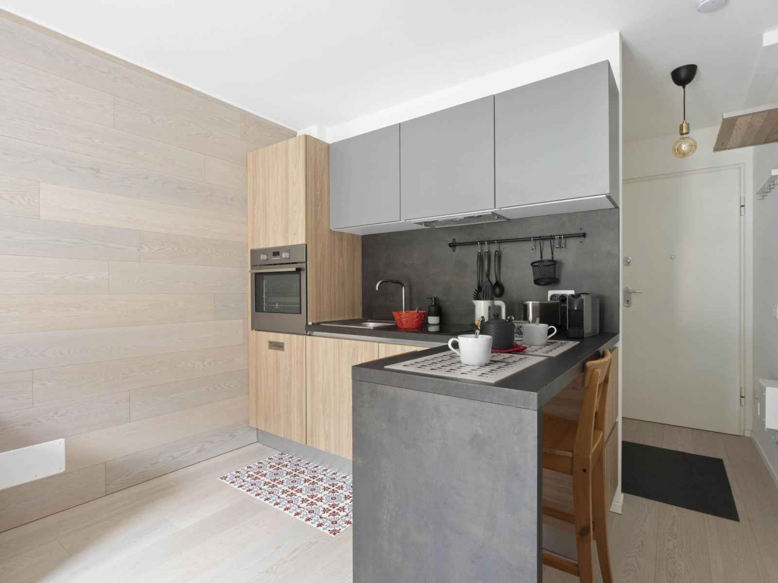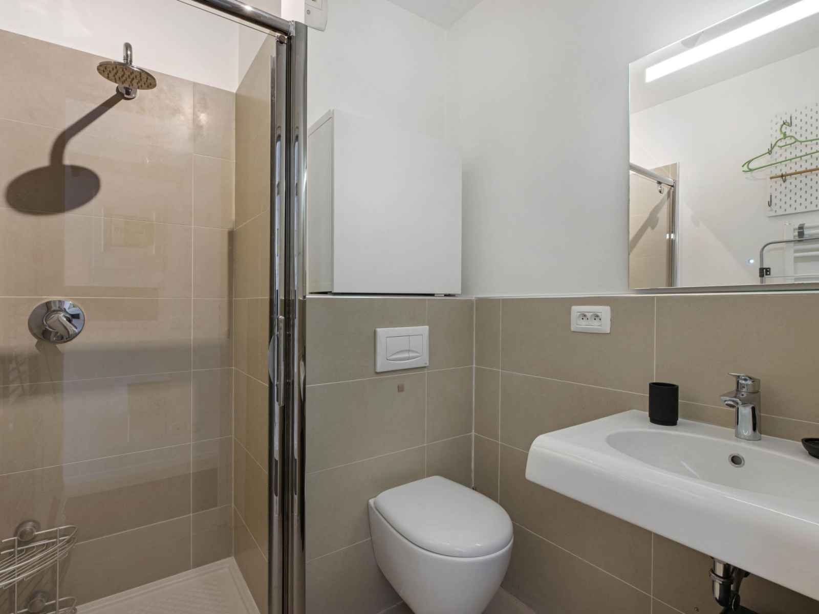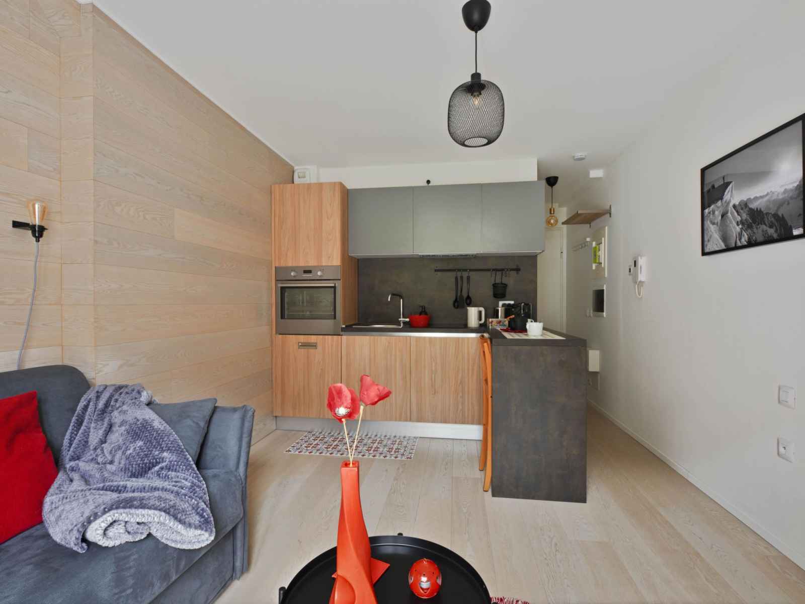 Studio 20 m2 au 2ème étage. séjour/salle à manger avec 1 divan-lit double (140 cm, longueur 200 cm), tv (écran plat). sortie sur le balcon. coin cuisine (2 plaques à induction, grille-pain, bouilloire électrique, micro-ondes, cafetière électrique, capsules pour machine à café (nespresso) (non incluses)). douche/wc. balcon 6 m2,