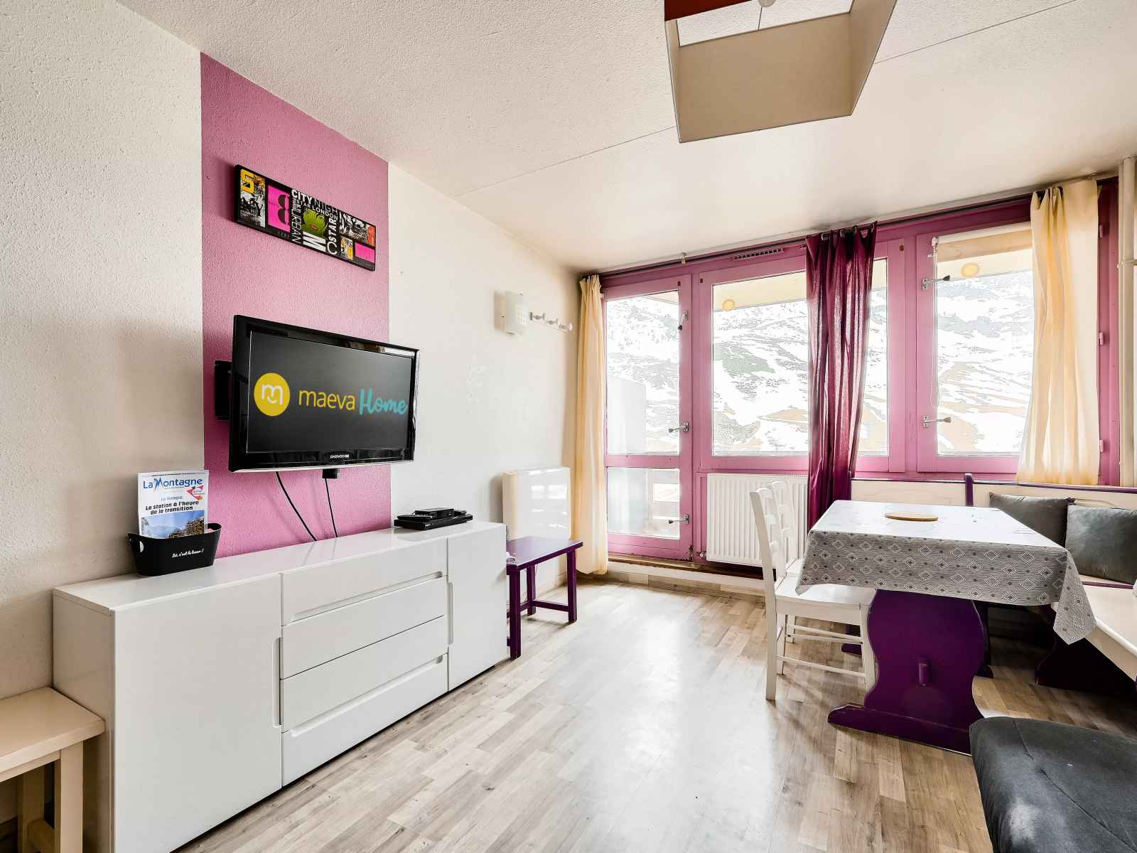 Les atouts de votre location : studio skis aux pieds avec balcon vue sur les pistes.