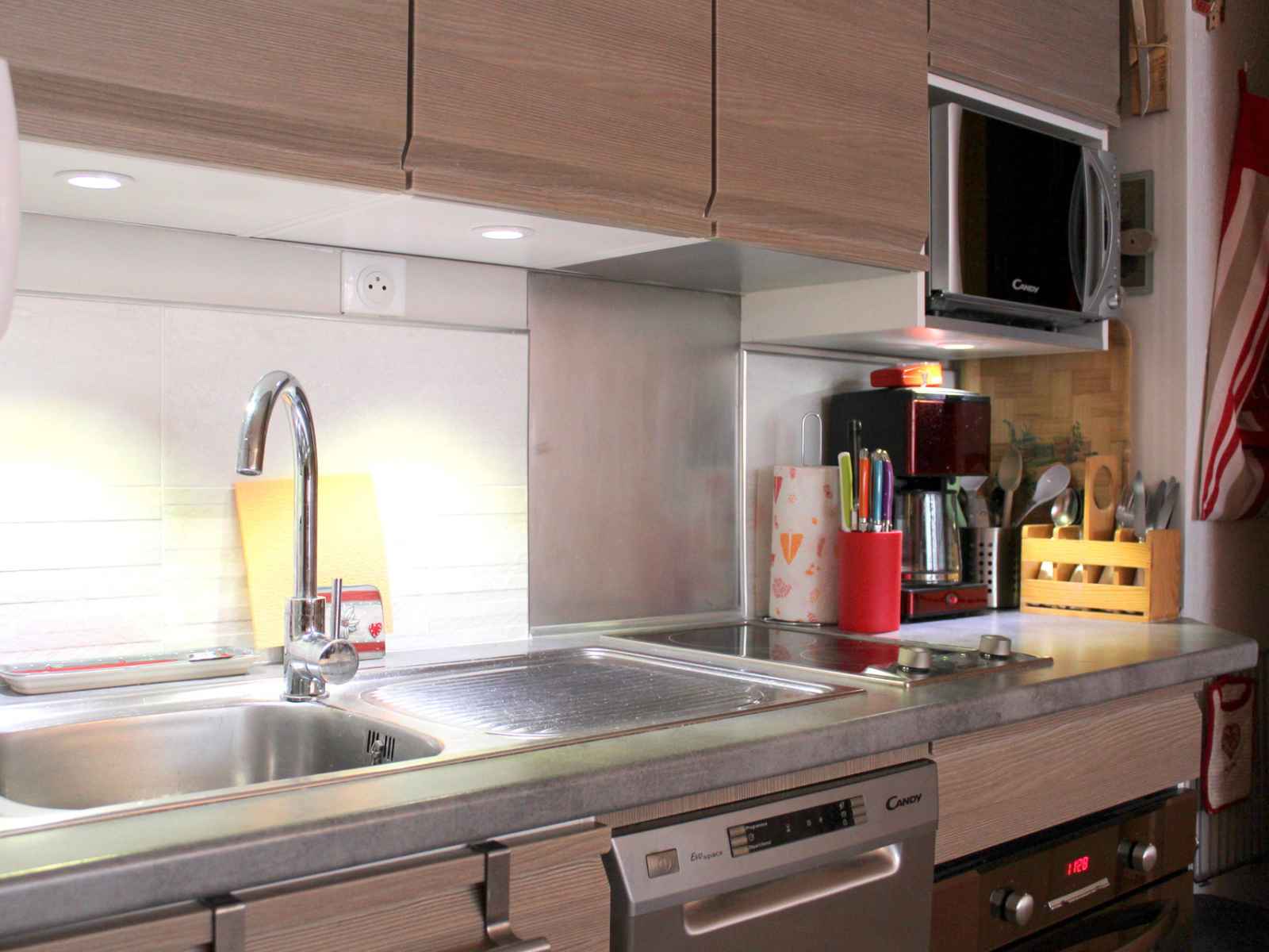 pour votre confort, le studio se compose d’une cuisine comprenant, plaques vitro céramiques, 1 réfrigérateur, 1 four, 1 lave-vaisselle et