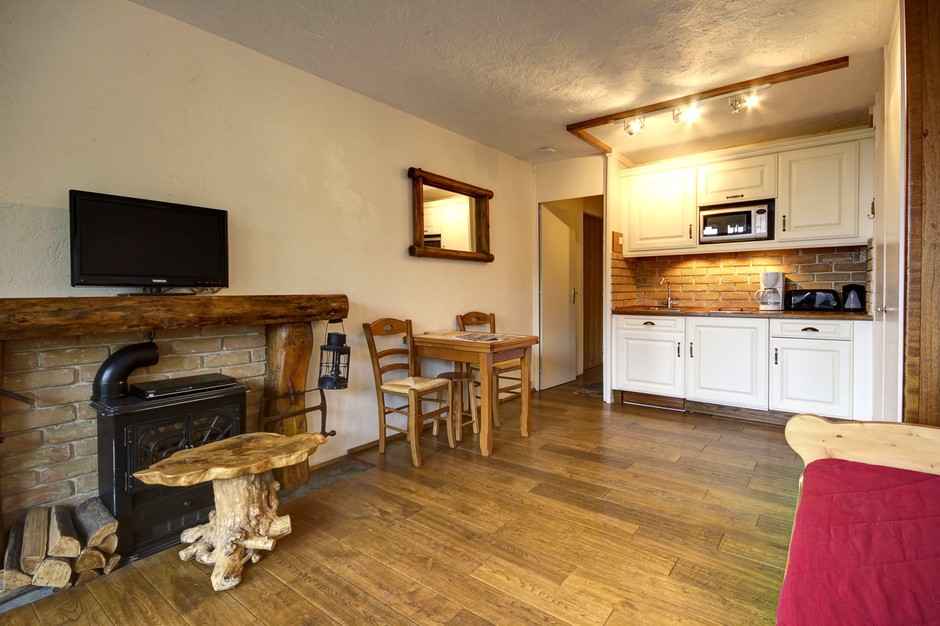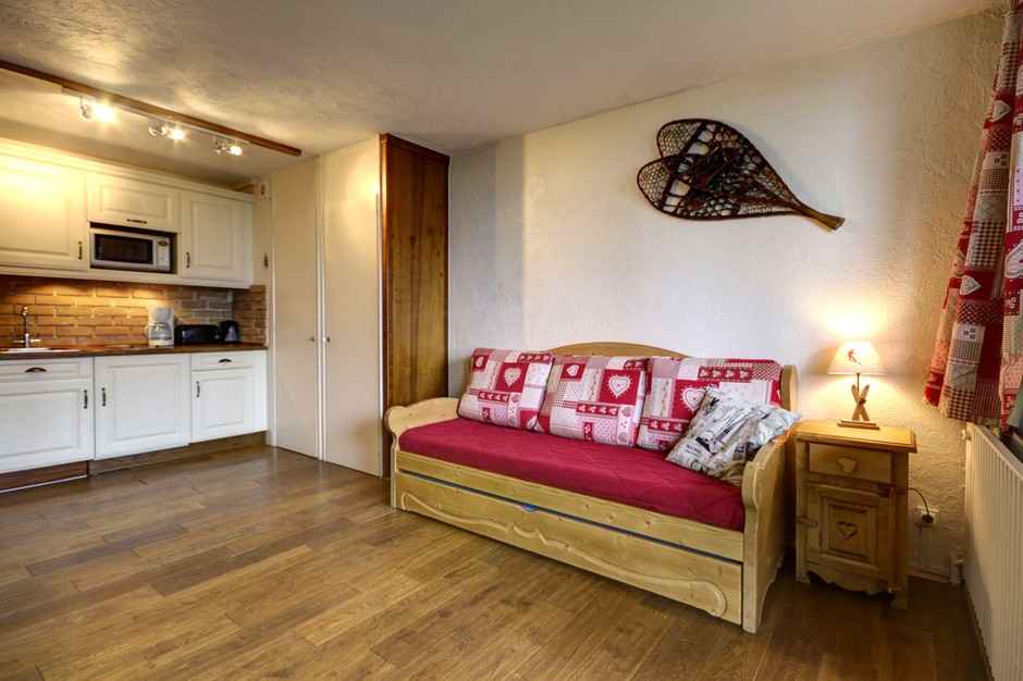 Mont-Blanc. Pour votre confort, le studio se compose d’une cuisine comprenant, 2 plaques vitro céramiques, 1 réfrigérateur, 1 combiné micro-ondes/grill et 1 lave vaisselle. Le séjour est composé d’un lit gigogne (utilisable en lit double en 160cm, ou 2 lits simples en 80cm) d’un téléviseur écran plat et 1 lecteur DVD. Le studio est équipé de couettes La salle de bain se compose d’un lavabo, baignoire et WC. Pour votre information, le linge de lit est non fourni. Côté pratique, 1 casier à skis est à disposition. Animaux non admis