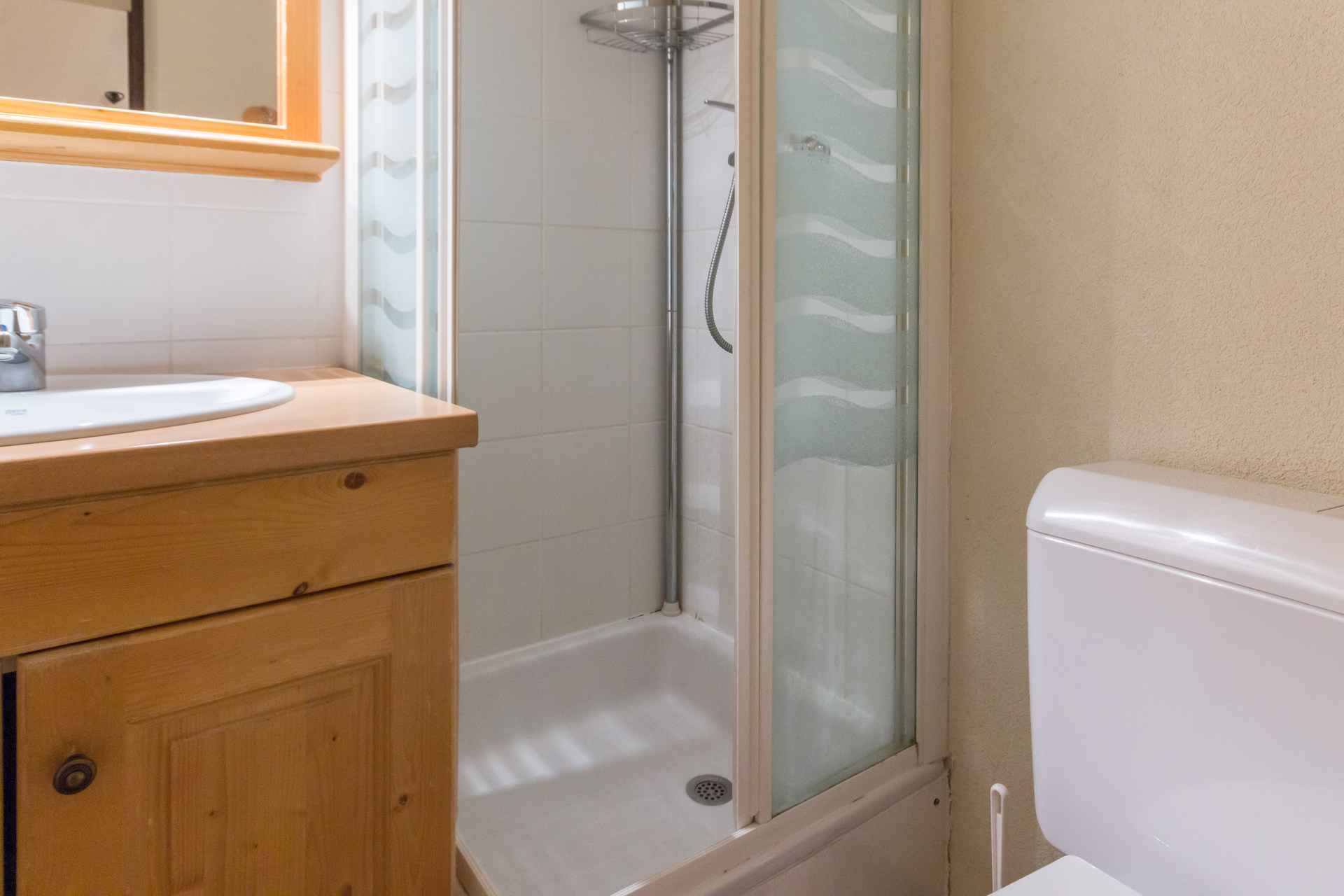 douche et WC. Le studio est équipé de couettes et de couvertures. La kitchenette à l'entrée est équipée de plaques électriques, d'un réfrigirateur, d'un four combi micro-ondes et d'un lave-vaisselle. Pour votre confort le studio dispose d'un casier à skis et la résidence est dotée d'ascenseurs. Pour votre information le linge de lit et le ménage de fin de séjour ne sont pas compris. Les animaux ne sont pas admis.