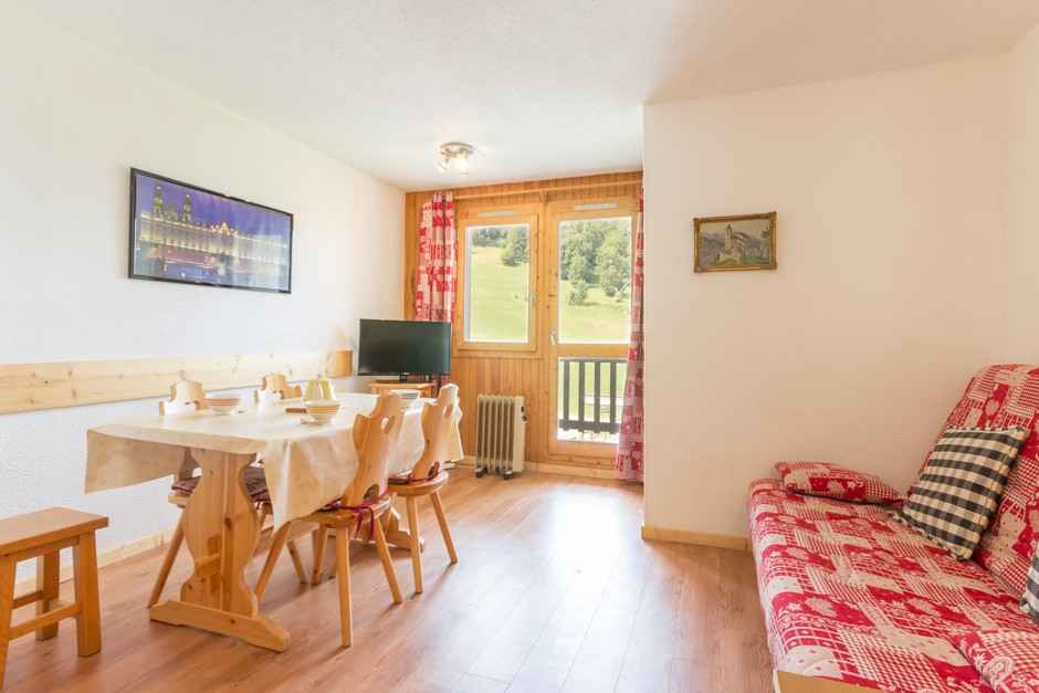 micro-ondes, grille-pain, bouilloire, cafetière électrique, réfrigérateur avec partie congélateur), d'une salle de bain avec baignoire et WC séparé. Le salon est équipé d'un canapé d'angle convertible pour deux personnes. Pour votre confort vous disposez d'une télévision. Casier à skis à votre disposition. Retour skis aux pieds possible selon l'enneigement. Ses atouts : - Studio bien entretenu - Terrasse avec vue sur la vallée et la forêt - Couette Linge et ménage de fin de séjour en suppléments. Animaux refusés. Appartement non fumeur.