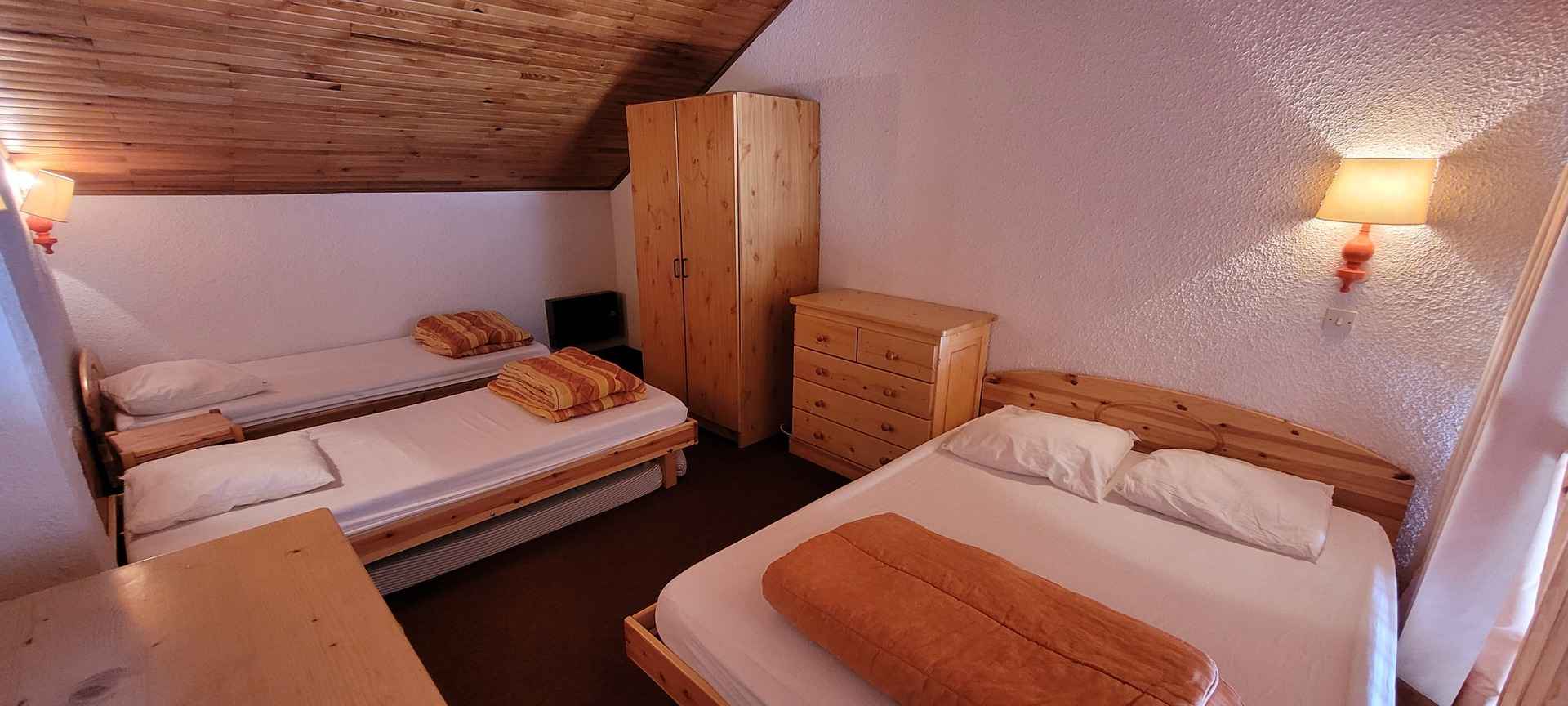 séjour est équipée de 2 plaques électriques, un four micro-ondes, 1 réfrigérateur et 1 petit lave vaisselle. Le séjour, est composé d’un lit gigogne 2 personnes et une T.V. écran plat. La mezzanine se ferme par un rideau et possède 1 lit double et 2 lits simples. Le studio est équipé de couettes La salle de bain se compose d’un lavabo, d’une baignoire et W.C. Pour votre information, le linge de lit est non fourni. Côté pratique 1 casier à skis est à disposition. Animaux non admis