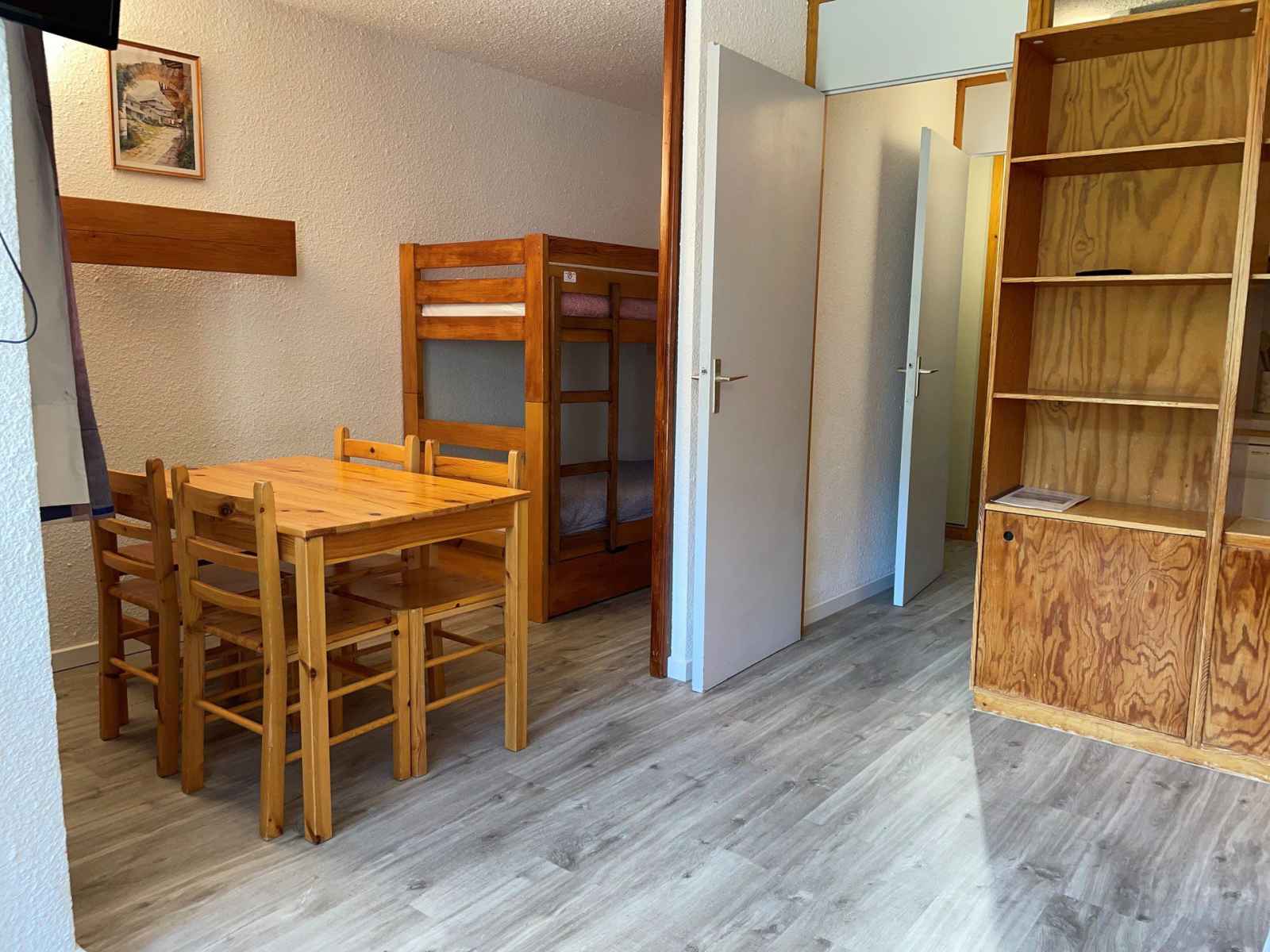 lits superposés pour 2 personnes de l'autre côté. Le salon possède une TV écran plat. Le studio est équipé de couettes La cuisine séparée est équipée de plaques vitrocéramiques, d'un réfrigirateur, d'un four micro-ondes combiné et d'un lave-vaisselle. La salle de bain possède une baignoire. Les WC sont séparés. Pour votre confort la résidence est équipée d'ascenseurs. Pour votre information le ménage de fin de séjour et le linge de lit ne sont pas compris. Les animaux ne sont pas admis