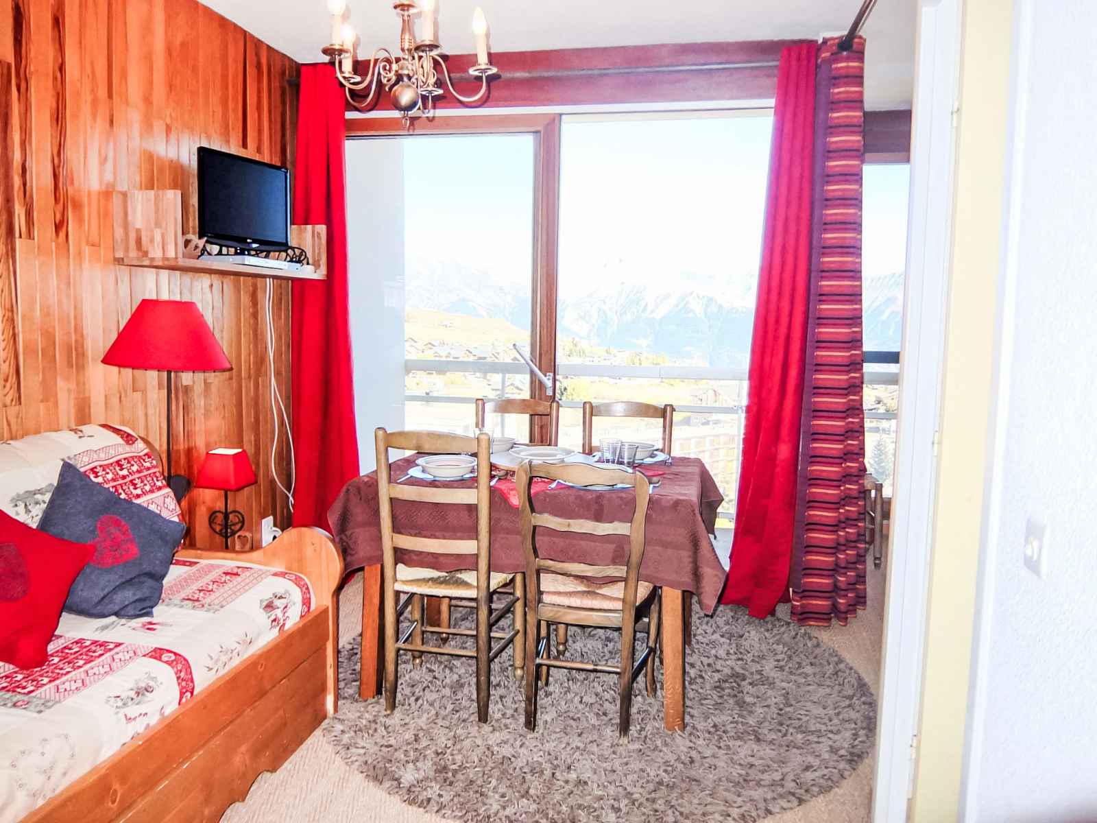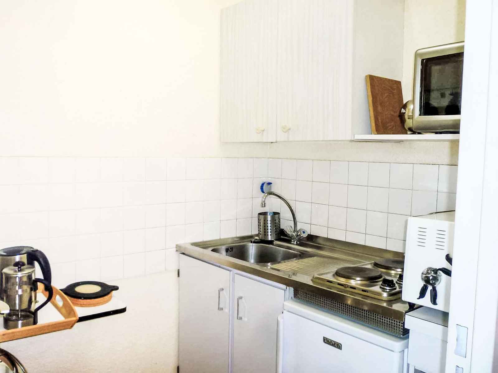 Studio 23 m2 au 7ème étage, situation nord. aménagement agréable et plaisant: séjour/salle à manger avec baie vitrée avec 1 lit gigogne (2 pers. 2 x 80 cm, longueur 190 cm), tv (écran plat), dvd. sortie sur le balcon. alcôve avec rideau avec 1 divan-lit double (140 cm, longueur 190 cm). petite cuisine (2 plaques de cuisson, mini-four,