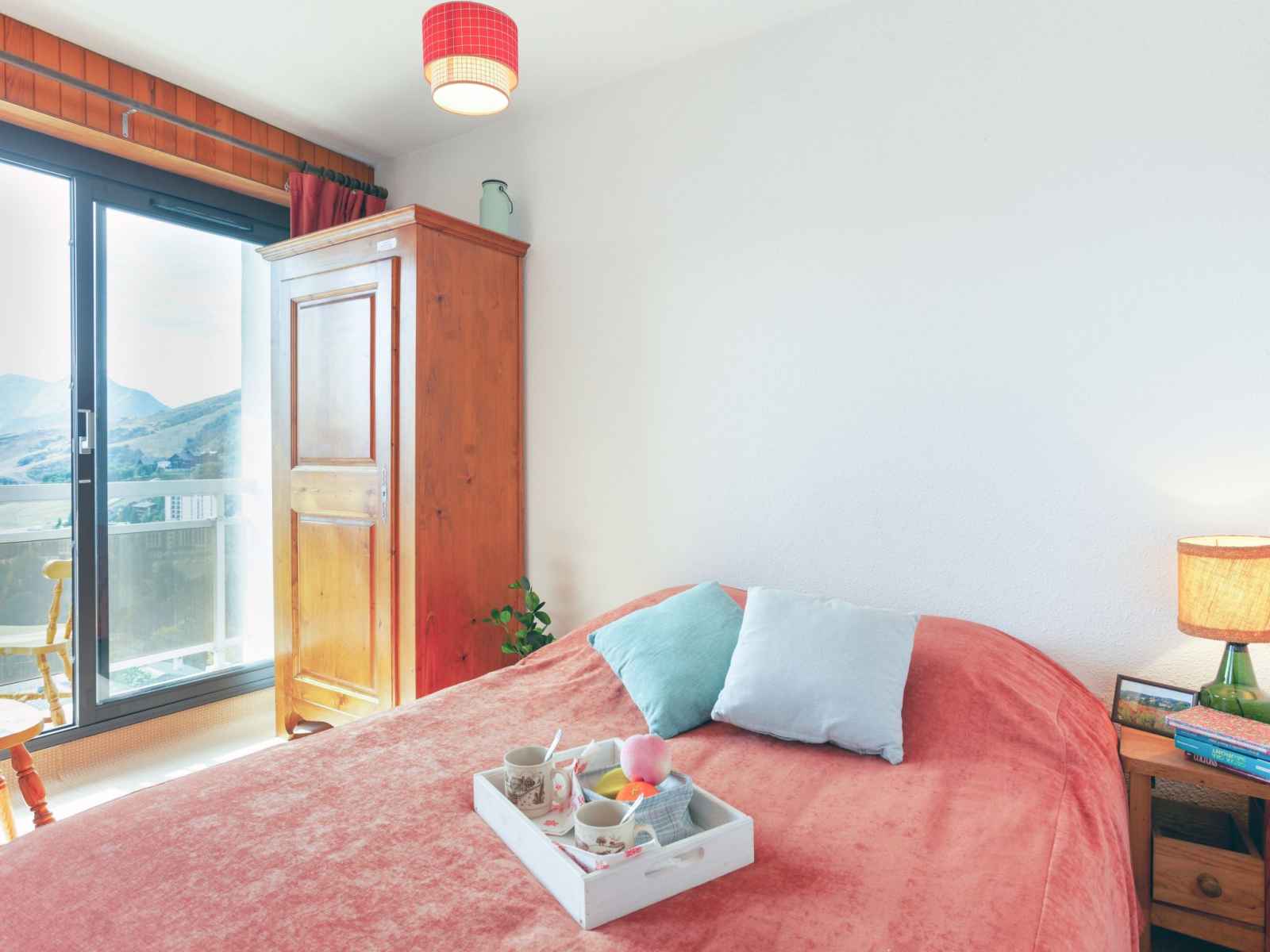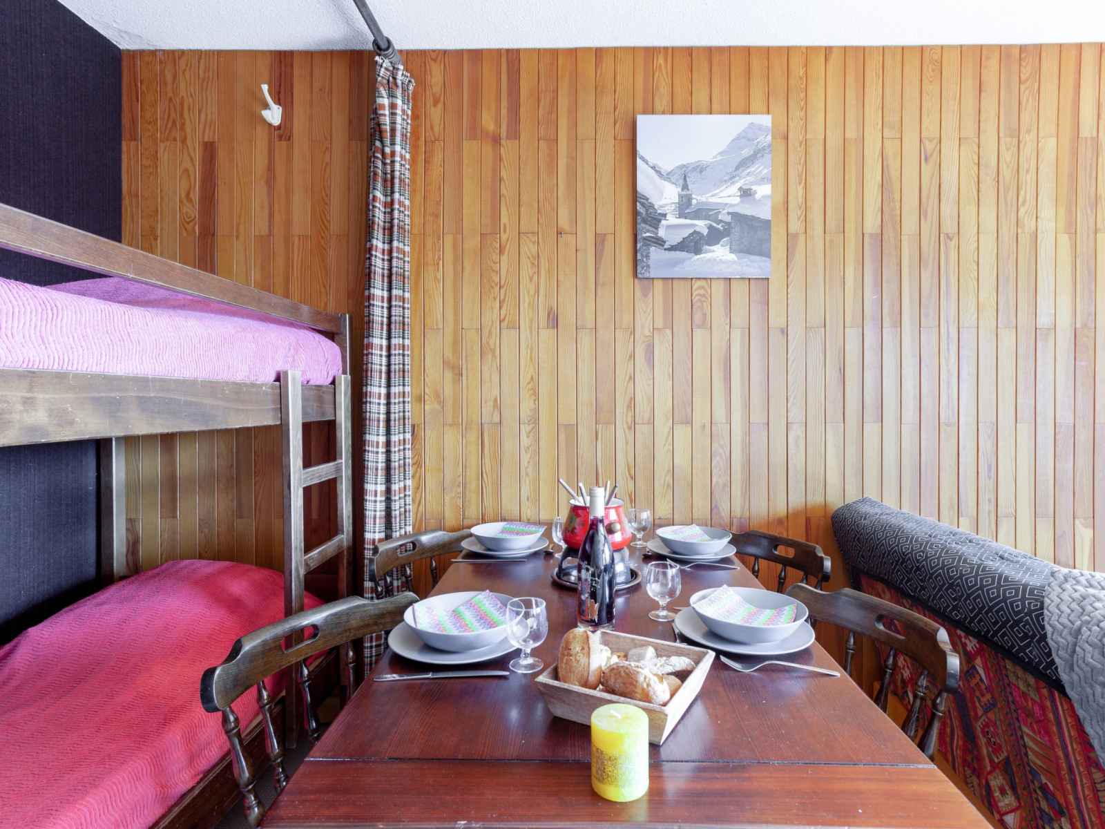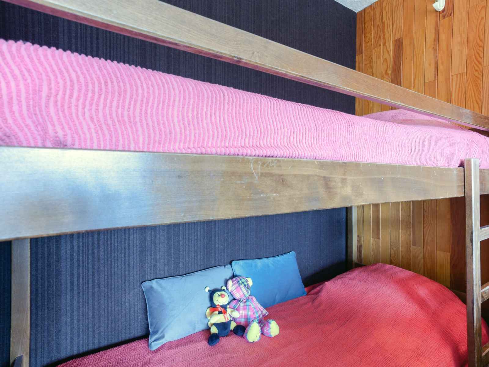 Studio 32 m2 au 3ème étage, situation sud. aménagement simple: séjour/salle à manger avec rideau avec 1 x 2 lits superposés (80 cm, longueur 190 cm), tv et dvd. sortie sur le balcon, orientée sud. alcôve avec rideau avec 1 grand-lit (140 cm, longueur 200 cm), volet roulant électrique. sortie sur le balcon, orientée sud. petite cuisine