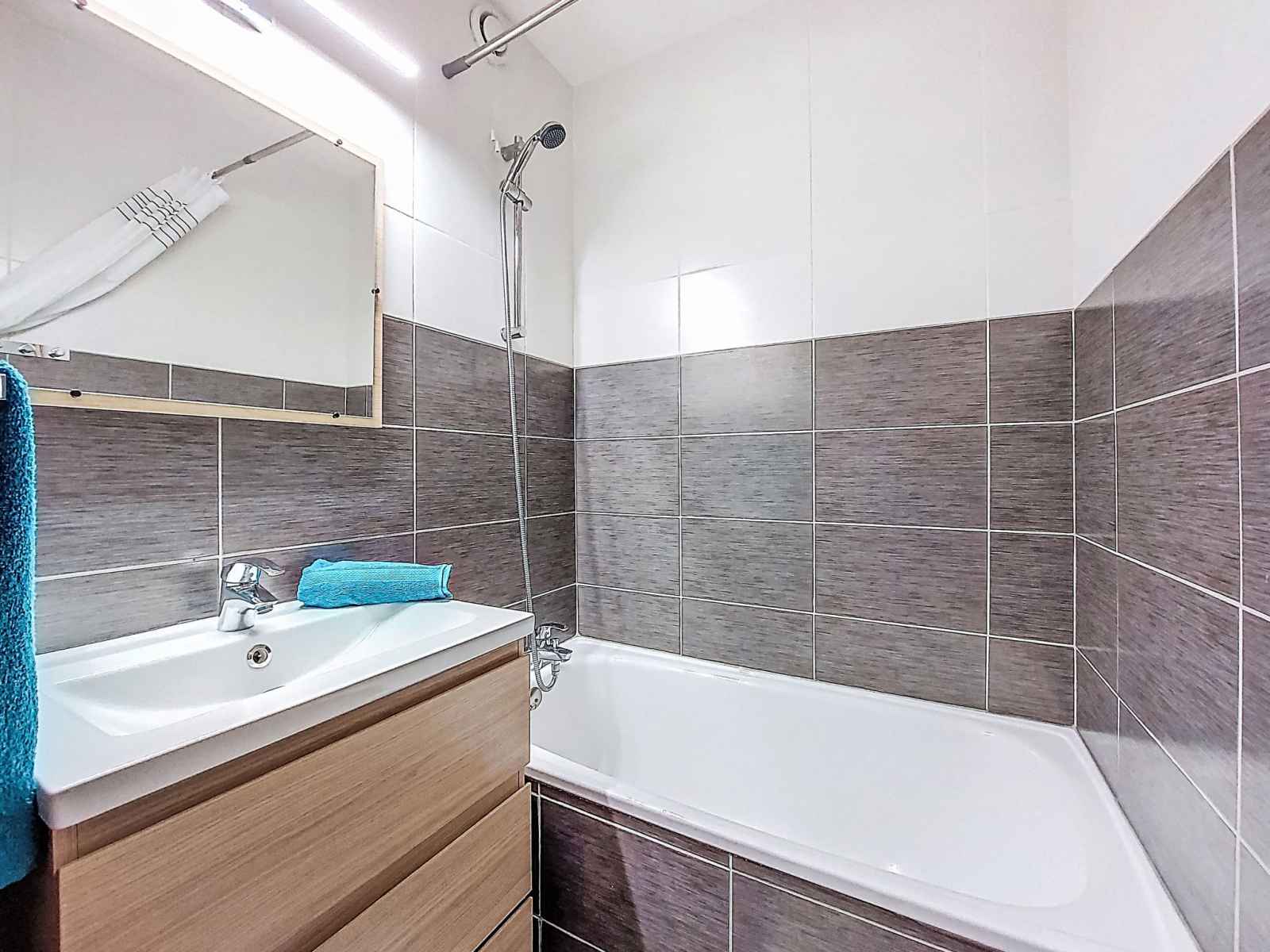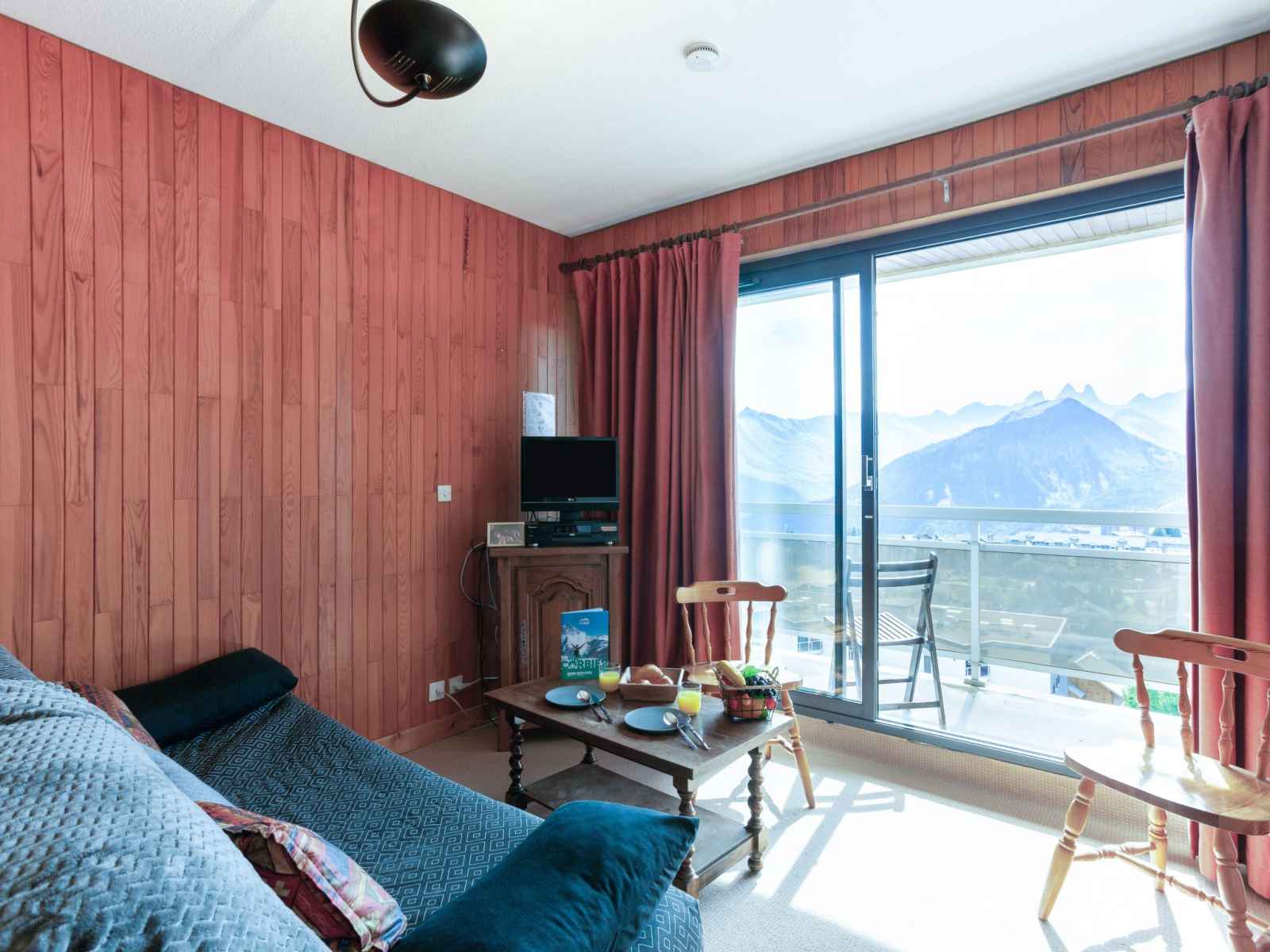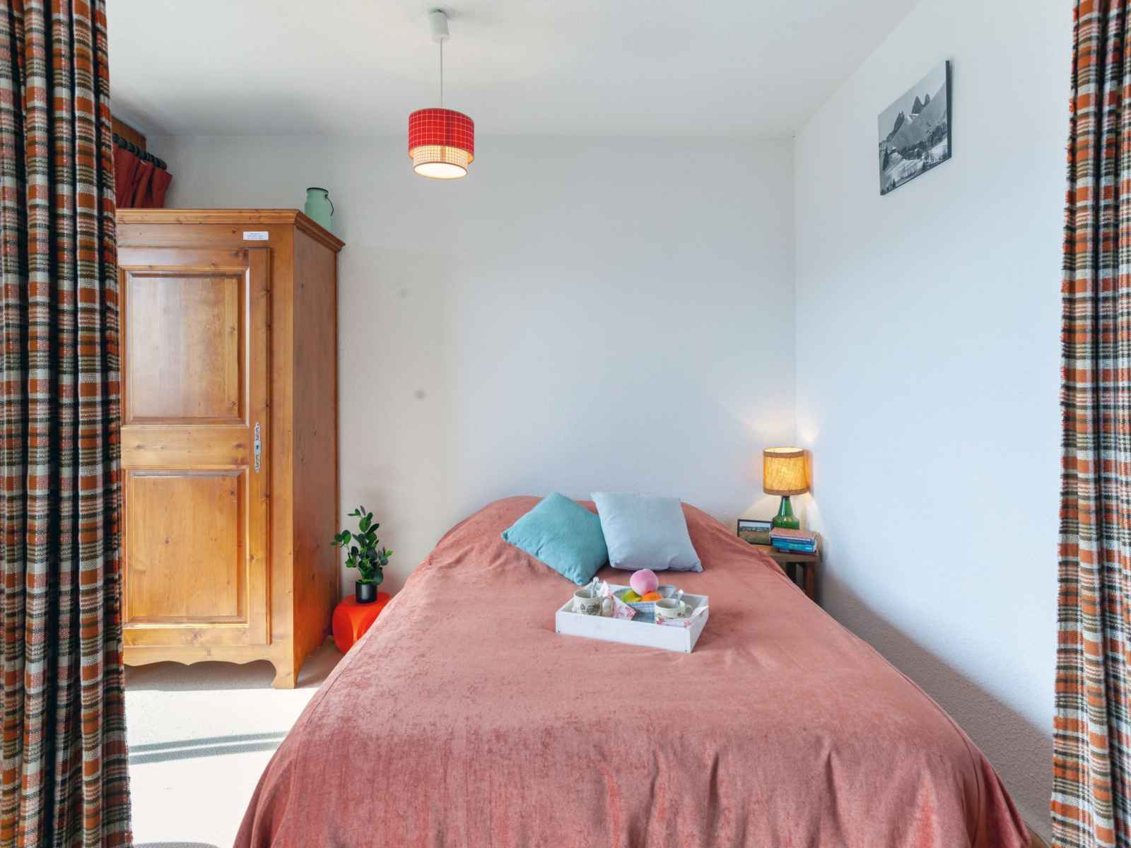 Studio 32 m2 au 3ème étage, situation sud. aménagement simple: séjour/salle à manger avec rideau avec 1 x 2 lits superposés (80 cm, longueur 190 cm), tv et dvd. sortie sur le balcon, orientée sud. alcôve avec rideau avec 1 grand-lit (140 cm, longueur 200 cm), volet roulant électrique. sortie sur le balcon, orientée sud. petite cuisine
