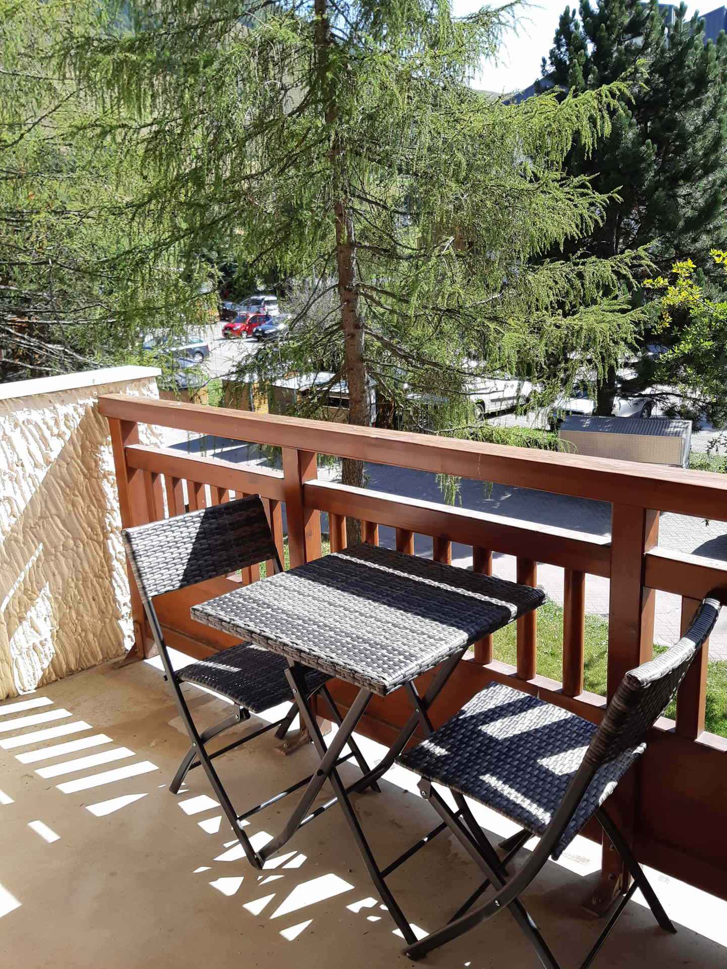 balcon exposé sud, avec vue sur les pistes.
