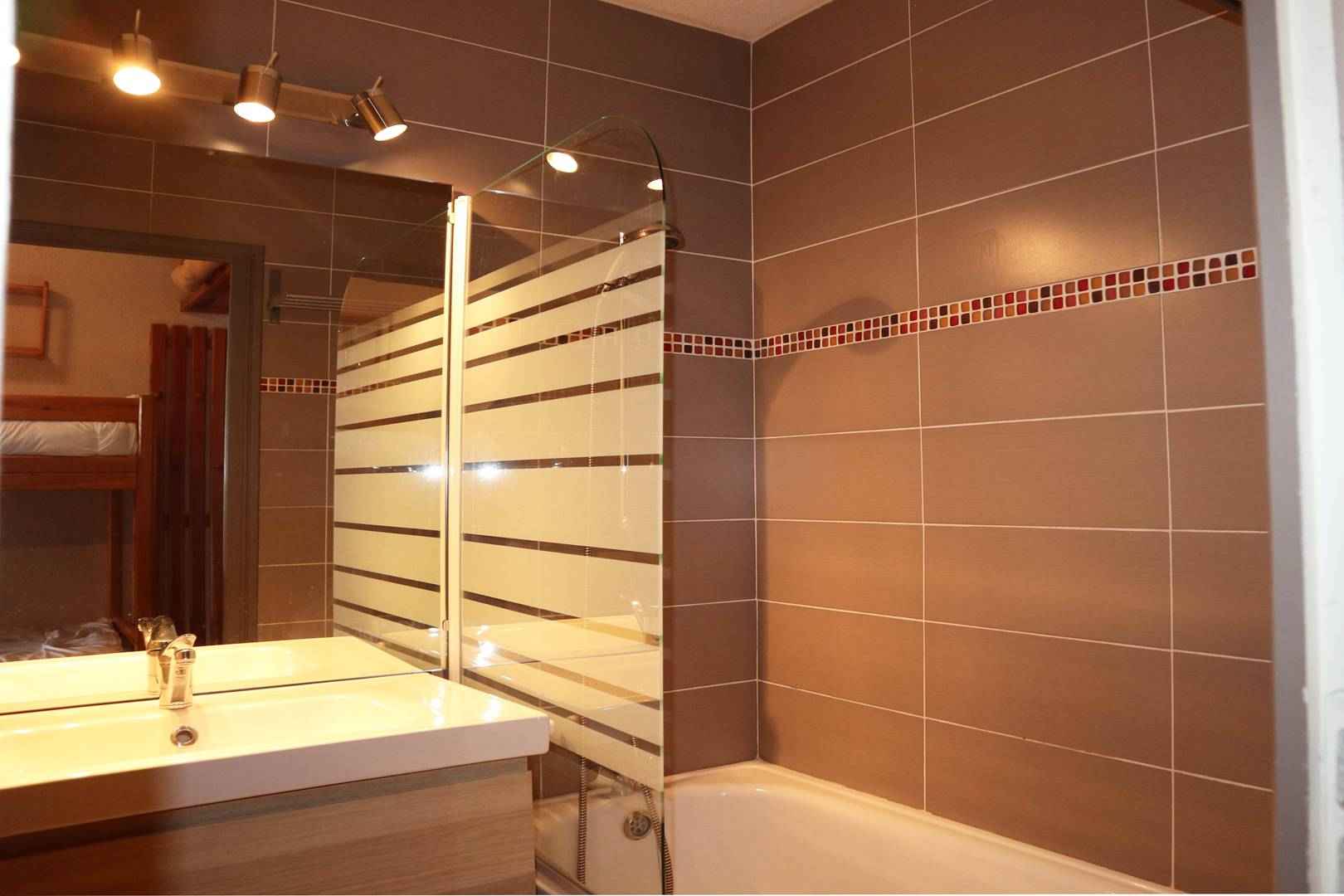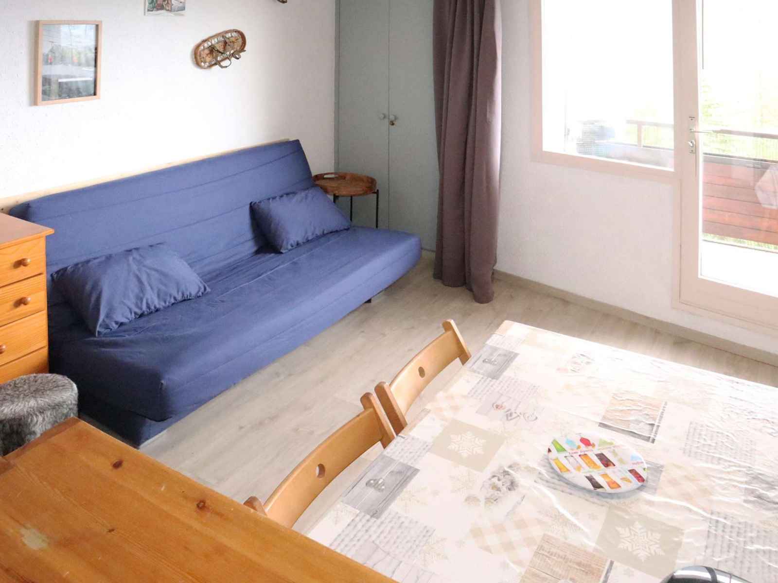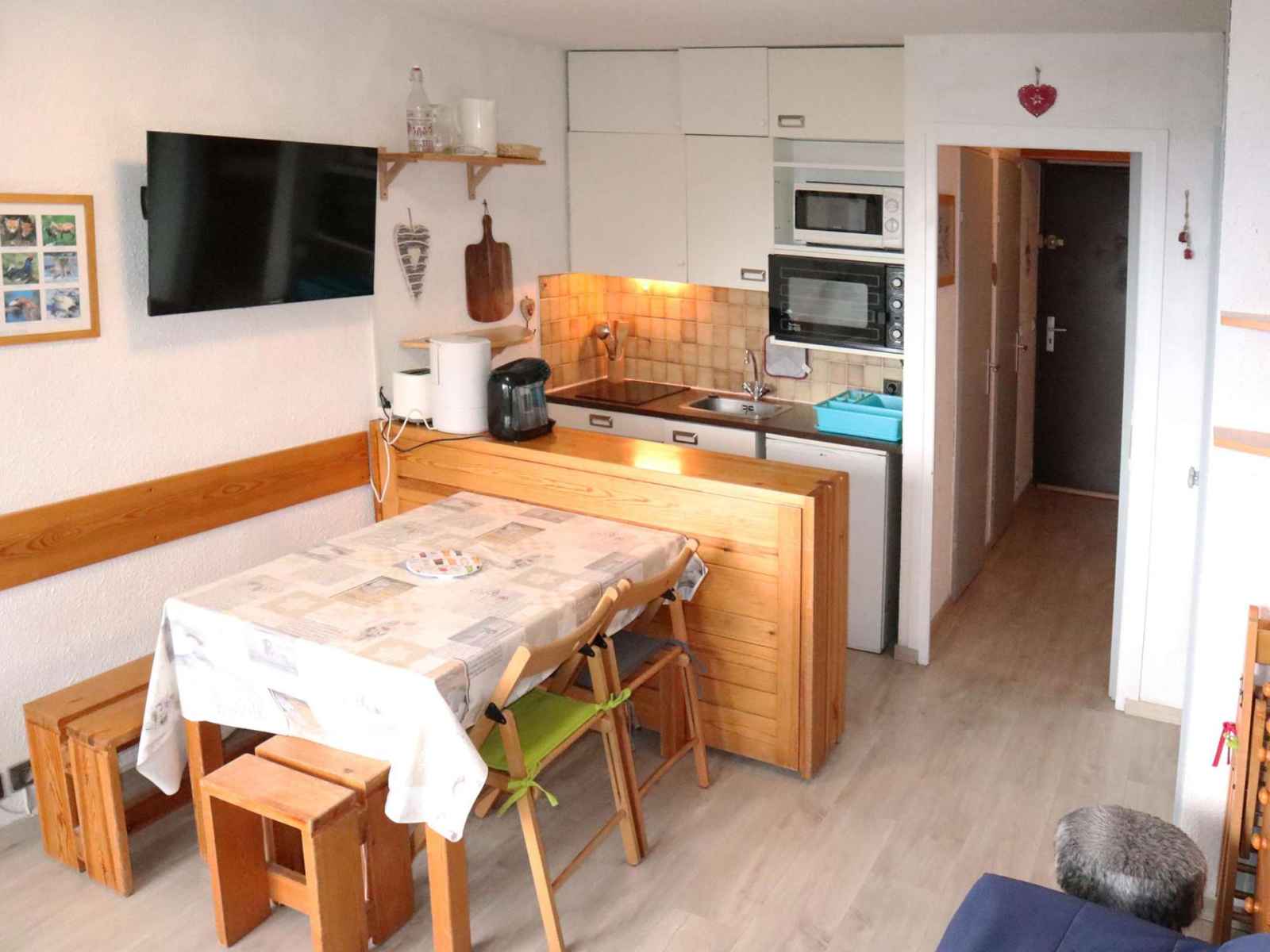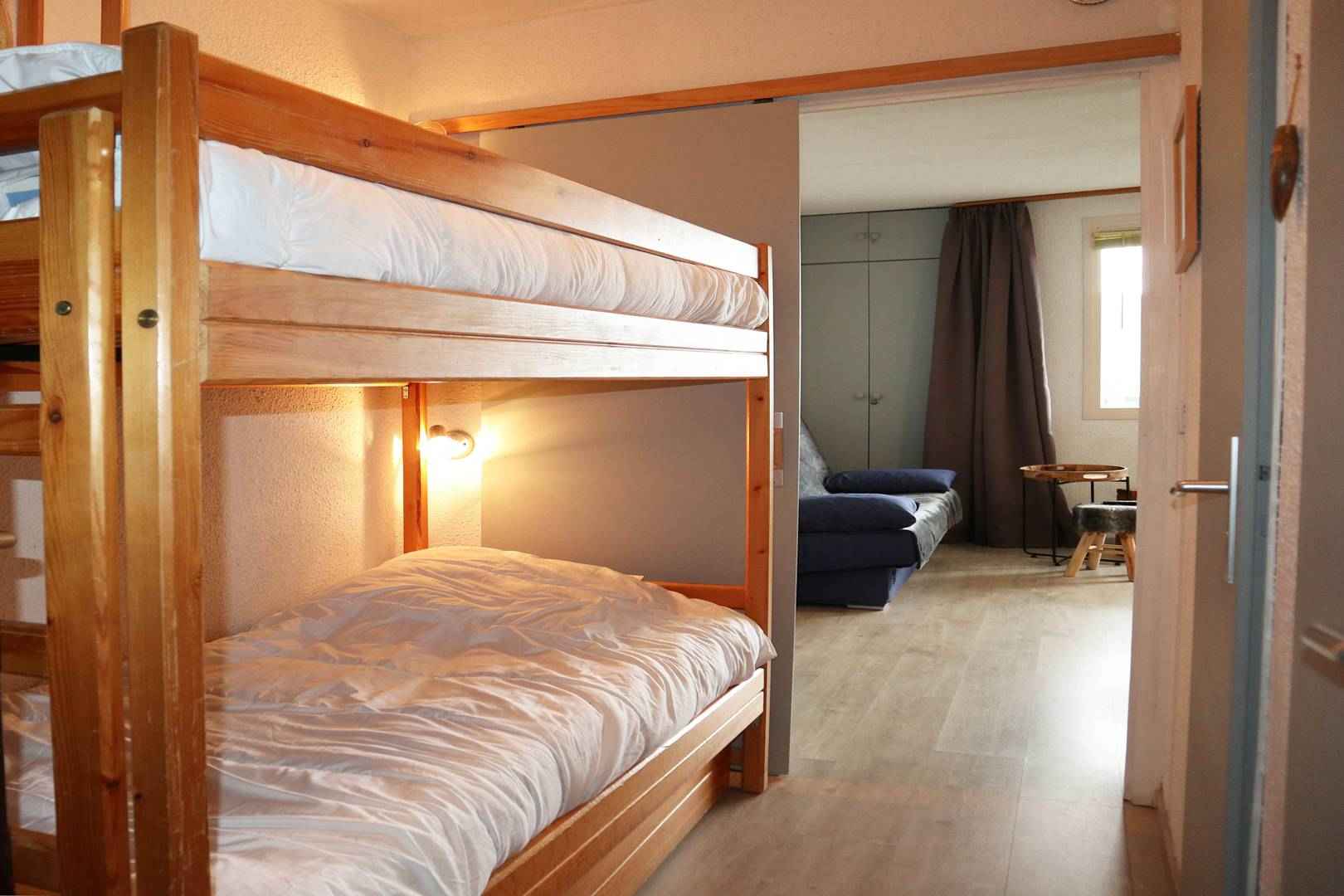 Studio au niveau 04 de la résidence avec ascenseur, idéalement situé en plein cœur de station sur la place centrale, comprenant une entrée avec 2 lits superposés 1 place, un séjour avec 1 banquette convertible 2 places, un coin cuisine équipé et ouvert sur le séjour, une salle de bains et wc indépendants. balcon offrant une très belle