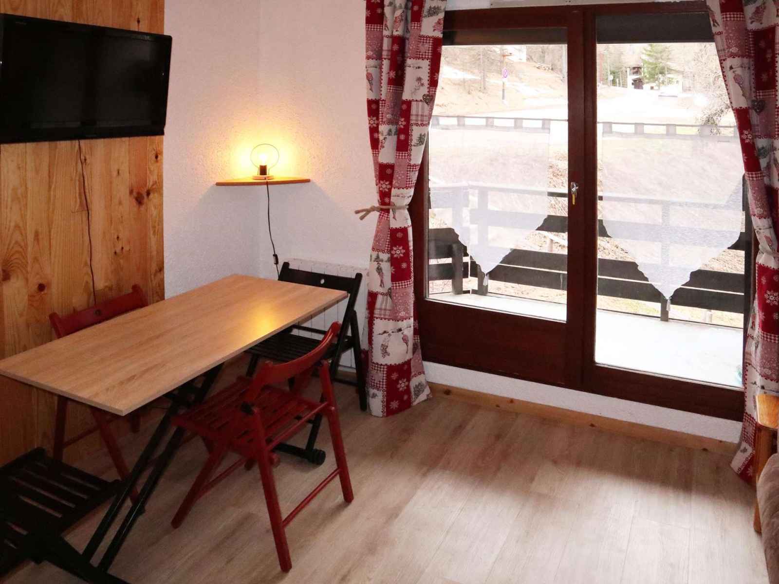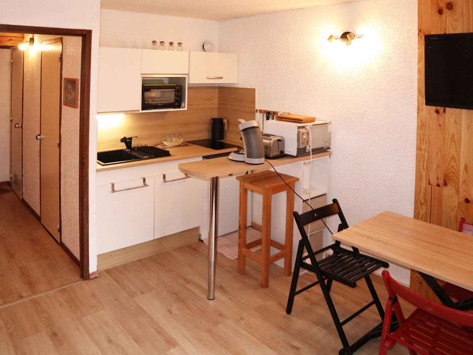 indépendant, un coin cuisine, un séjour avec une banquette convertible deux places, balcon exposition sud. Box à Skis.
