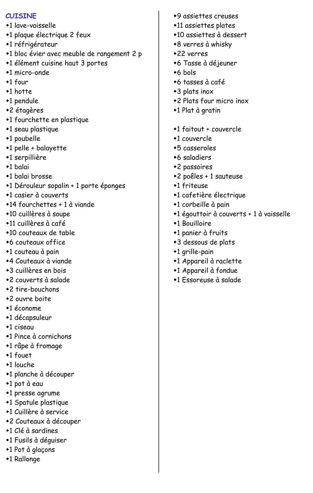 • Equipements : Balcon, Box à Skis, Chauffage Electrique, Four, Hotte aspirante, Lave vaisselle, Micro onde, Parquet, réfrigérateur, Télévision