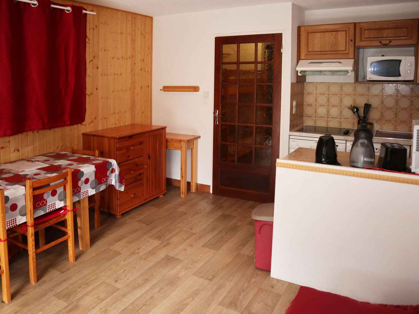 Studio équipé pour 4 personnes situé au 1er étage avec ascenseur de la résidence les flocons, à 400 m du centre station, accès très rapide aux pistes par le télesiège de prébois face à la résidence. il est composé d'un coin montagne avec 2 lits superposés 1 place, d'un séjour avec une banquette convertible 2 places , d'un coin