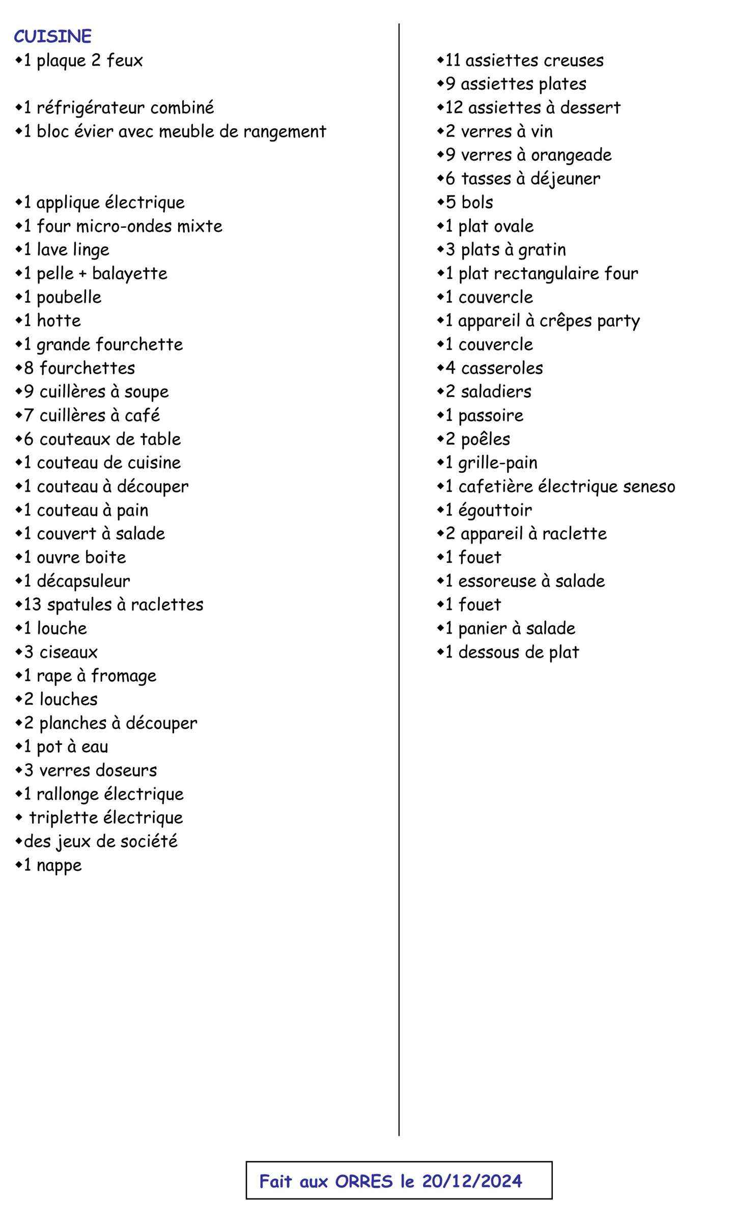 - Caution 400 € (CB ou espèces)