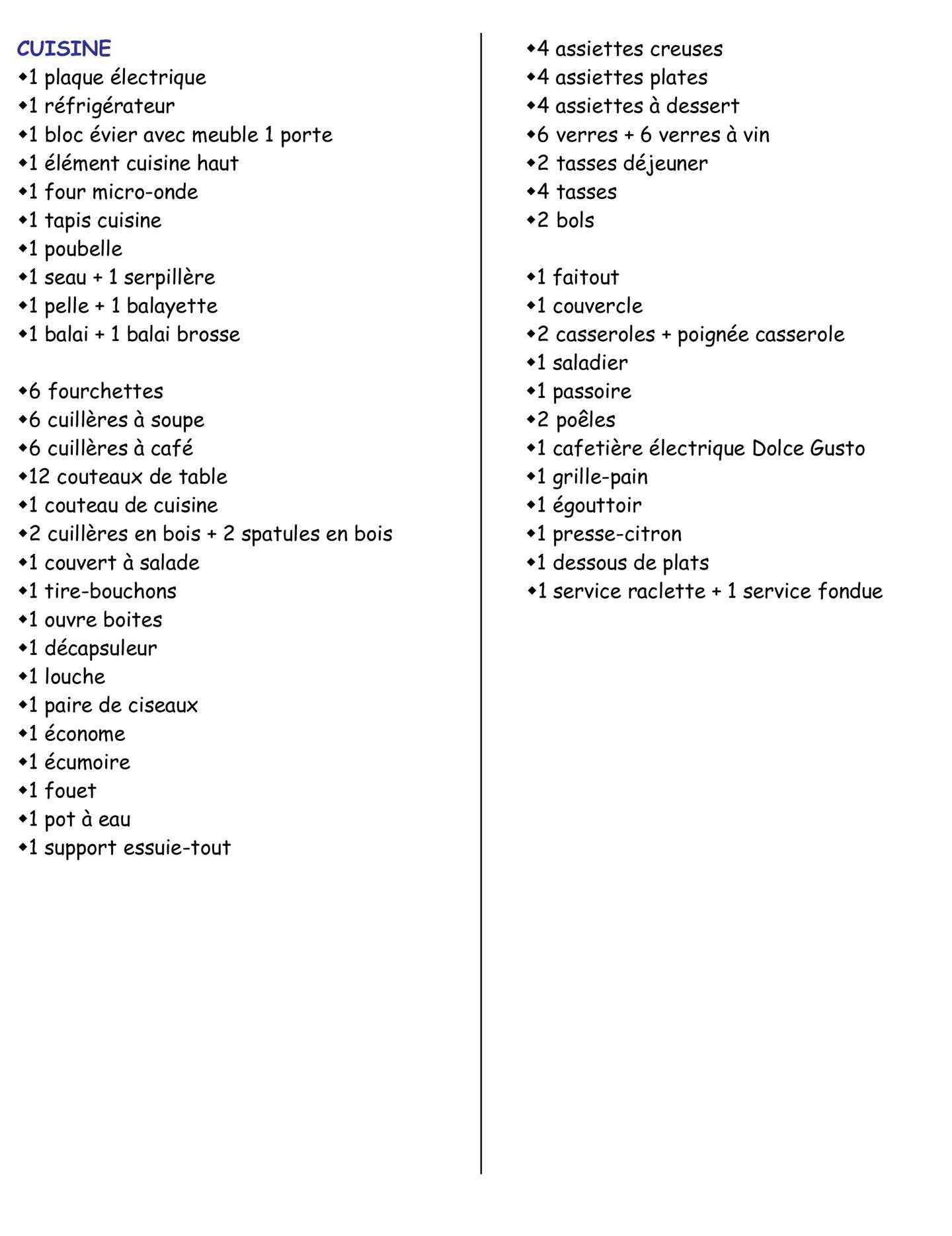 • Equipements : Parquet, réfrigérateur, Box à Skis, Chauffage Electrique, Micro onde, Télévision
