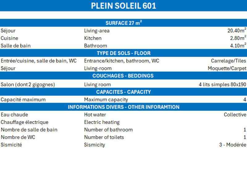 - Caution 350 € (CB ou chèque détruit au plus tard 14 jours après votre départ)
