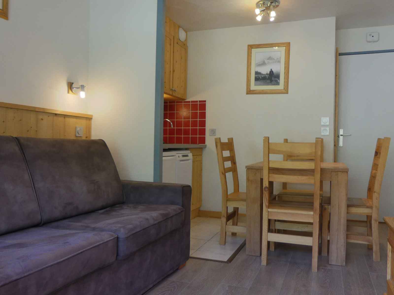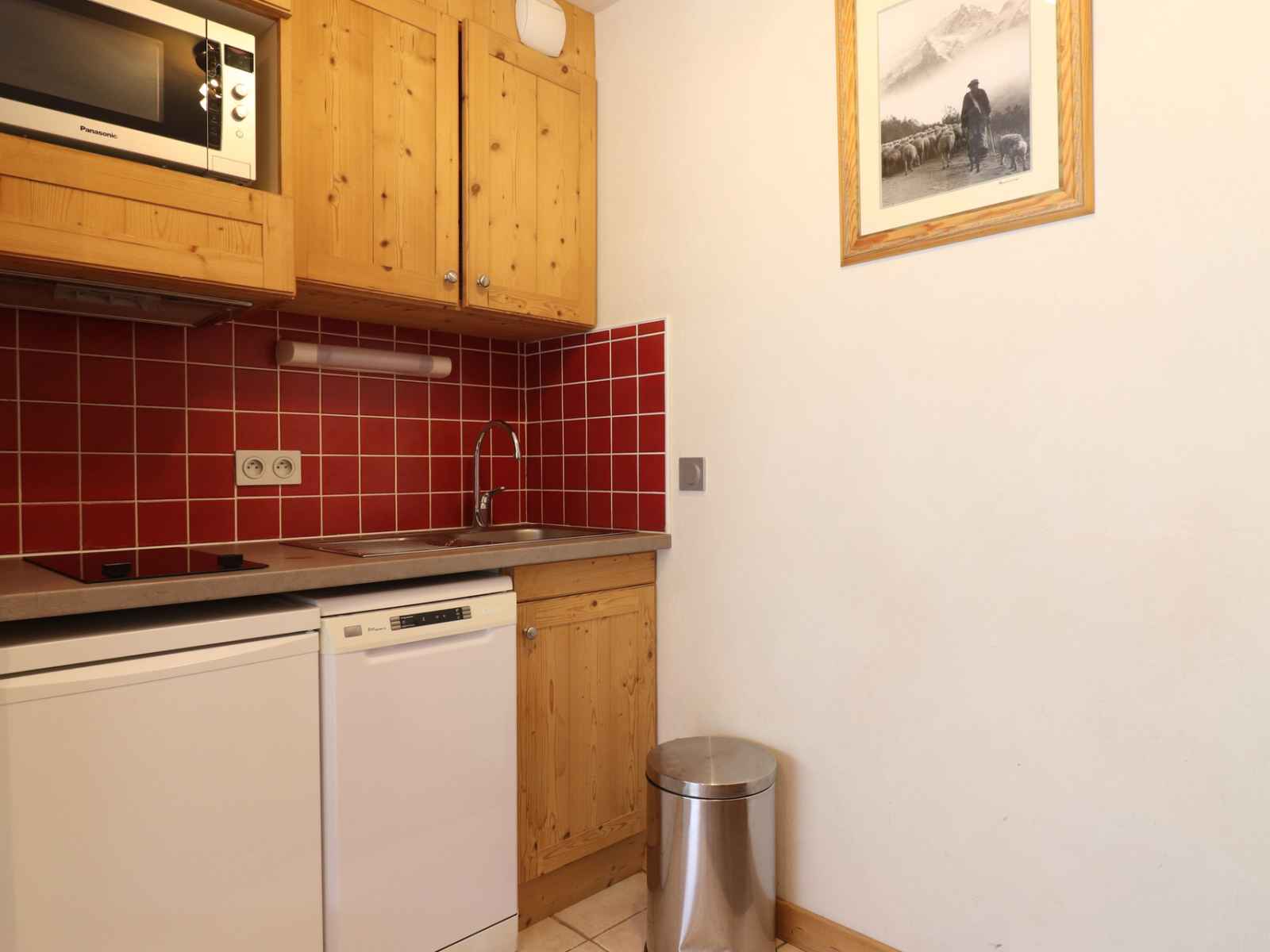 kitchenette : micro-ondes combiné, frigidaire, lave-vaisselle, 2 plaques
